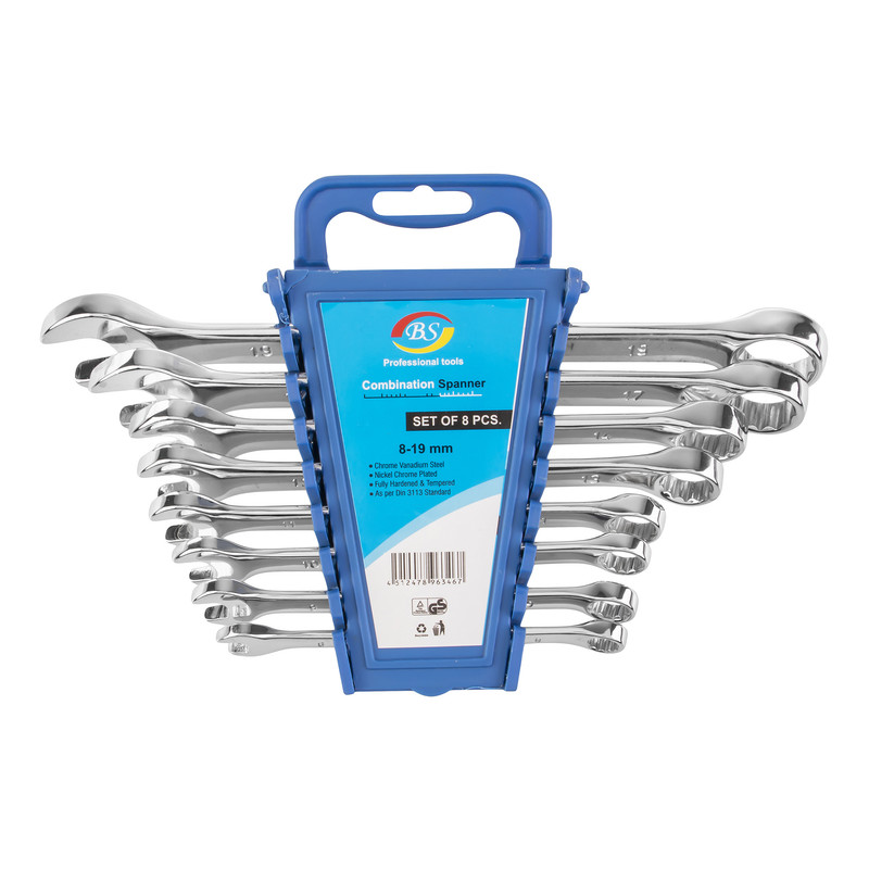 آچار یکسر تخت و یکسر رینگی بی اس تولز مدل 001 مجموعه 8 عددی