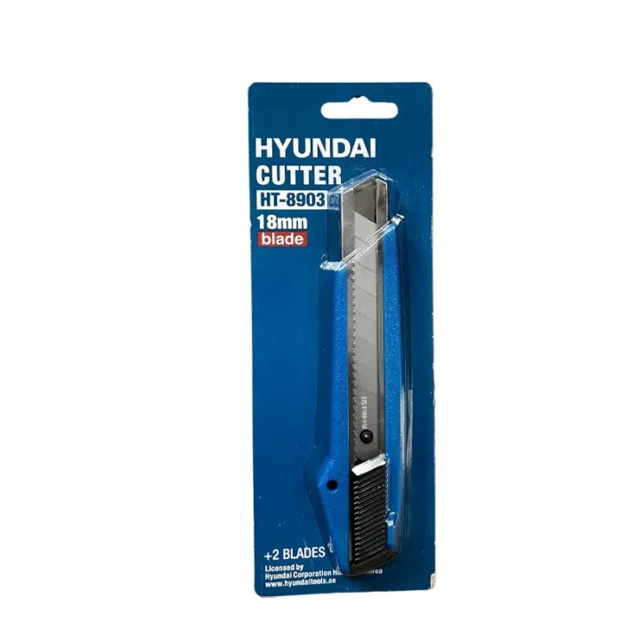 کاتر هیوندای مدل HT-8903 با تیغه ی 18 میلیمتری یکی از بهترین گزینه های موجود در بازار ایران است. کاتر هیوندای دارای ریل استیل مجزا برای تیغه است که همین طراحی منحصربه فرد موجب تعویض سریع و آسان تیغه میشود. یکی از بزرگترین مشکلات کاربران هنگام کار با کاتر مربوط به زمانی است که نوک تیغه کند میشود و لازم است تا از محل مشخص شده شکسته شود. معمولا اینکار با استرس و نگرانی از آسیب فیزیکی و برش ناخواسته همراه است. اما با کاتر 18 میلیمتری هیوندای مدل HT-8903 که مجهز به تیغه شکن است شما هیچگونه نگرانی ای از بابت شکستن ایمن و ساده ی تیغه ها نخواهید داشت. همچنین این کاتر مجهز به قفل اتوماتیک است که تیغه را در محل خود ثابت و محکم نگه میدارد و برش هایی دقیق و منظم ایجاد میکند. بدنه ی این کاتر از جنس ABS و بسیار مقاوم و بادوام است.