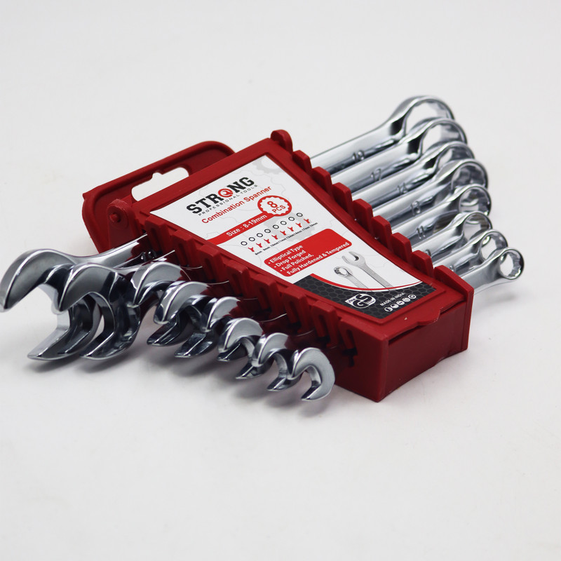 آچار یکسر تخت و یکسر رینگی استرانگ مدل YP-8-19MM مجموعه 8 عددی