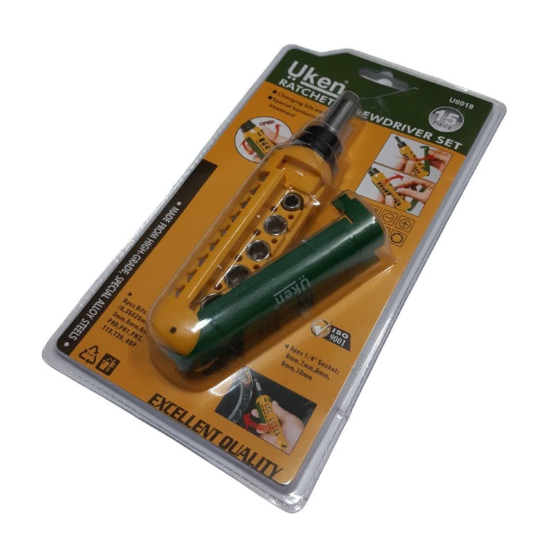 پیچ گوشتی مشتی جغجغه ای یوکن مدل U6018 مجموعه 15عددی