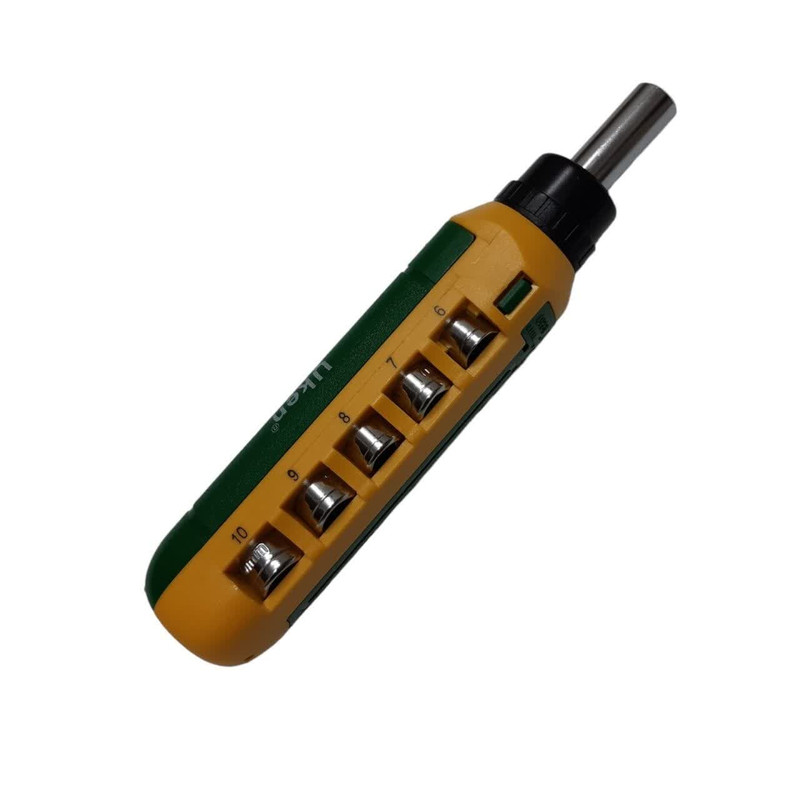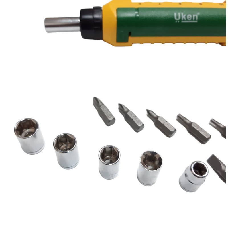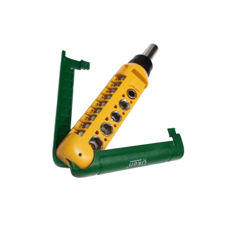 پیچ گوشتی مشتی فوق یک مجموعه 15 عددی از سری پیچ گوشتی دوسو و چهارسو ،بکسی و النی می باشد.این پیچ گوشتی ساخت UKEN انگلیس بوده و مونتاژ چین می باشد.مجموعه فوق بصورت کشویی بوده و سری ان قابلیت دو جهته جغجغه ای دارد.