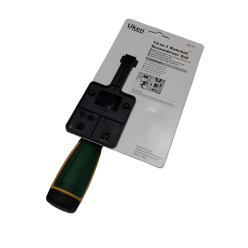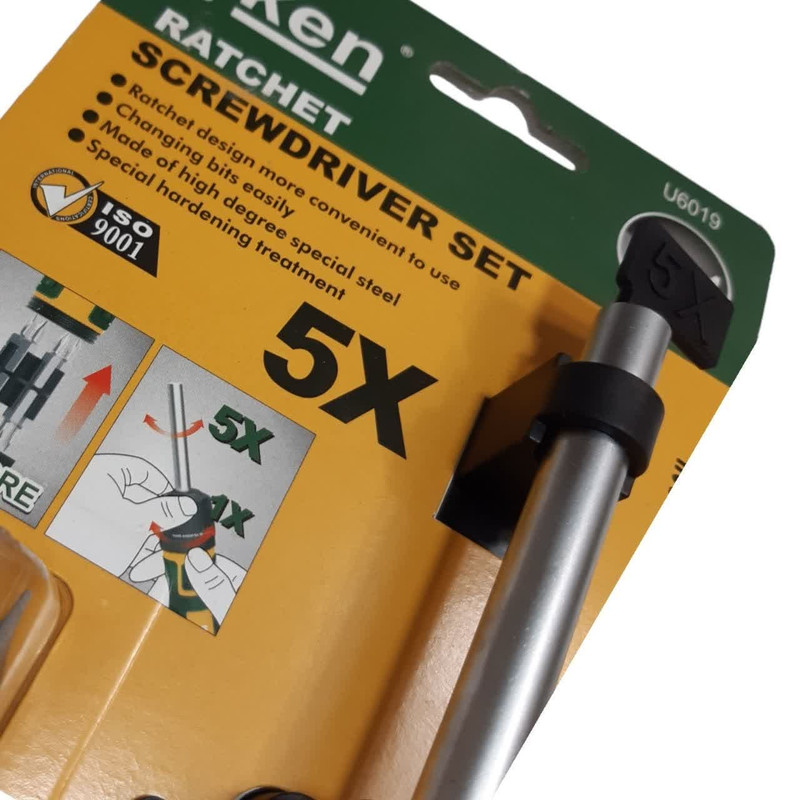 ست پیچ گوشتی جغجغه ای فوق یک مجموعه 12عددی بوده است.این پیچ گوشتی جغجغه ای بوده و سرعتی می باشد.یعنی با یک بار چرخش دسته پیچ گوشتی سری ان 5 دور می چرخد و سبب تسریع در بستن یا باز نمودن پیچ می شود.این ست دارای سری های دوسو وچهرسو بوده است.انتهای این پیچ گوشتی فضای خالی داشته و میتوان سری ها را در داخل ان جای داد.این ست ساخت UKEN انگلیس بوده و مونتاژ چین می باشد.