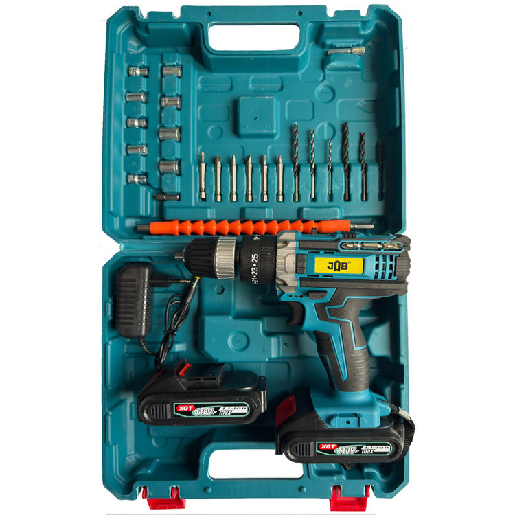 دریل پیچ گوشتی شارژی چکشی سه نظام 10 میلیمتر 118 ولت جاب مدل JB-118 MAX EDITION مجموعه 40 عددی