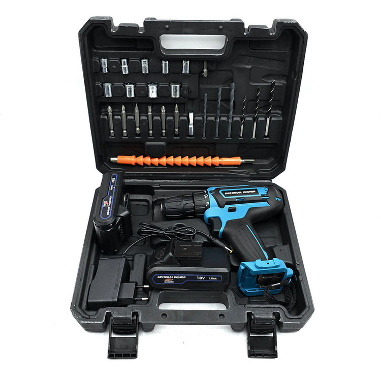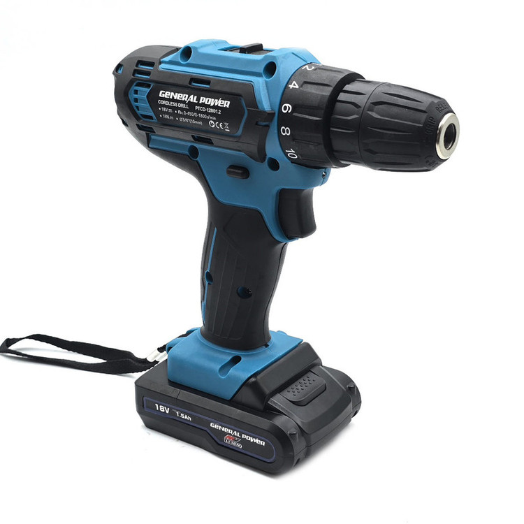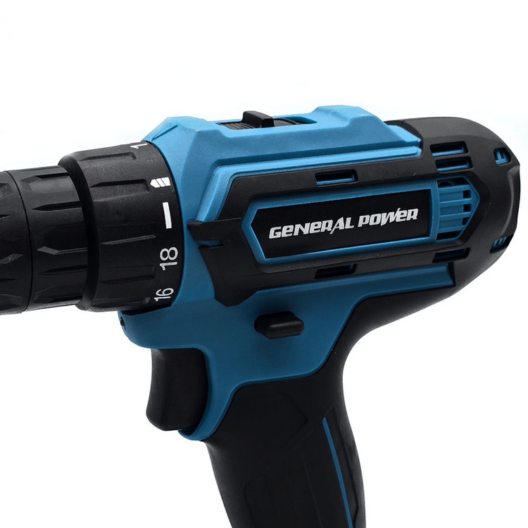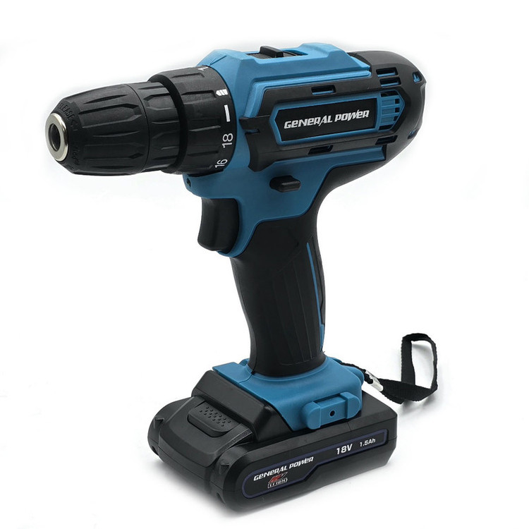 دریل پیچ گوشتی شارژی برند جنرال پاور تک باتری مدل 18V از جمله ابزارهای چند منظوره موجود در بازار میباشد که در انواع صنعتها به ویژه کارگاهها مصارف خانگی مناسب کار میباشد در این دریل 18 ولت لیتیومی یک و نیم آمپر تعبیه شده که این وسیله را برای انجام کارهای سبک تا متوسط مناسب کرده است با توجه به اینکه در دستگاه سه نظام ۱۰ میلیمتری اتوماتیک استفاده شده است امکان تعویض مته را برای کاربر سریع و آسان میکند این دستگاه از یک گیربکس دو سرعته بهره میبرد سرعت آن را با توجه به عملیات تغییر دهید همچنین در دستگاه یک ال ای دی تعبیه شده که برای روشن کردن محیطهای تاریک بسیار مفید است همچنین این دستگاه دارای چپ گرد و راست گرد و نیز نوک پیچگوشتی روی بدنه می باشد.همپنین ماکسیمم سرعت آن به 1800 دور در دقیقه میرسد.