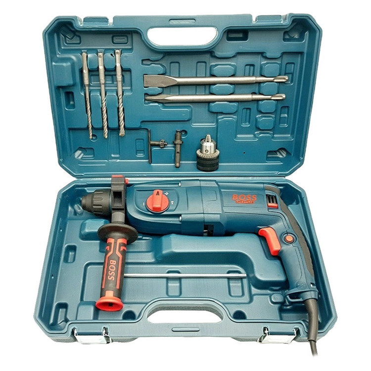 شرکت باس (Boss) با ارائه چندین مدل دریل، انتخاب یک دریل مناسب را برای مشتریان راحت کرده است. مدل Industrial New 26sre با وزن 3 کیلوگرم، یک دریل ضربهای با قدرت 2200 وات است. این دستگاه هم برای مصارف تجاری و هم برای استفاده در اماکن صنعتی مناسب است. این دریل توانایی سوراخکاری در چوب، فلز و بتون را دارد و حداکثر قطر سوراخ در این چوب، فلز و مصالح، به ترتیب 30، 13 و 26 میلیمتر است و برای تعویض مته نیازی به آچار ندارد. Industrial New 26sre یک دریل بتنکن مناسب جهت کار در بسیاری از مشاغل صنعتی به شمار میآید که توسط فروشگاه جعبه ابزار توزیع می گردد. دریلهای برقی مختلفی در مدلها و طرحهای مختلف، توسط شرکتهای معتبر و جویای نام، تولید و به بازار عرضه شدهاند. مسلما این محصولات باهدف تأمین نظر مشتری و باقابلیتهای مختلف طراحی و تولید میشوند. خریدار با در نظر گرفتن مشخصاتی چون اندازه، قدرت و لوازم جانبی دستگاه در کنار شکل ظاهری و برند آن، اقدام به انتخاب و خرید دریل برقی موردنیاز خود میکند. در خصوص دریلهای چکشی و ضربهای که بیشتر برای امور صنعتی کاربرد دارند نیز به همین روال عمل میشود. بهخصوص کسانی که در مشاغلی چون آهنگری، کارگاههای ساختمانی و کار با بتون و مشتقات آن هستند، برای خرید دریل مورداستفاده خود، جدای از مشخصههایی که ذکر شد به دنبال دستگاهی کارآمد و پرتوان هستند که در کنار قدرت و سرعت مناسب، عمر طولانی داشته باشد. نکته مدنظر این افراد غالبا قدرت ضربه و عملکرد مناسب دستگاه در ساعات کار طولانی و پشت سر هم است. هرقدر دریل توانایی تحمل کار در این شرایط را داشته باشد، بیشتر موردتوجه کاربران و متقاضیان قرار میگیرد.