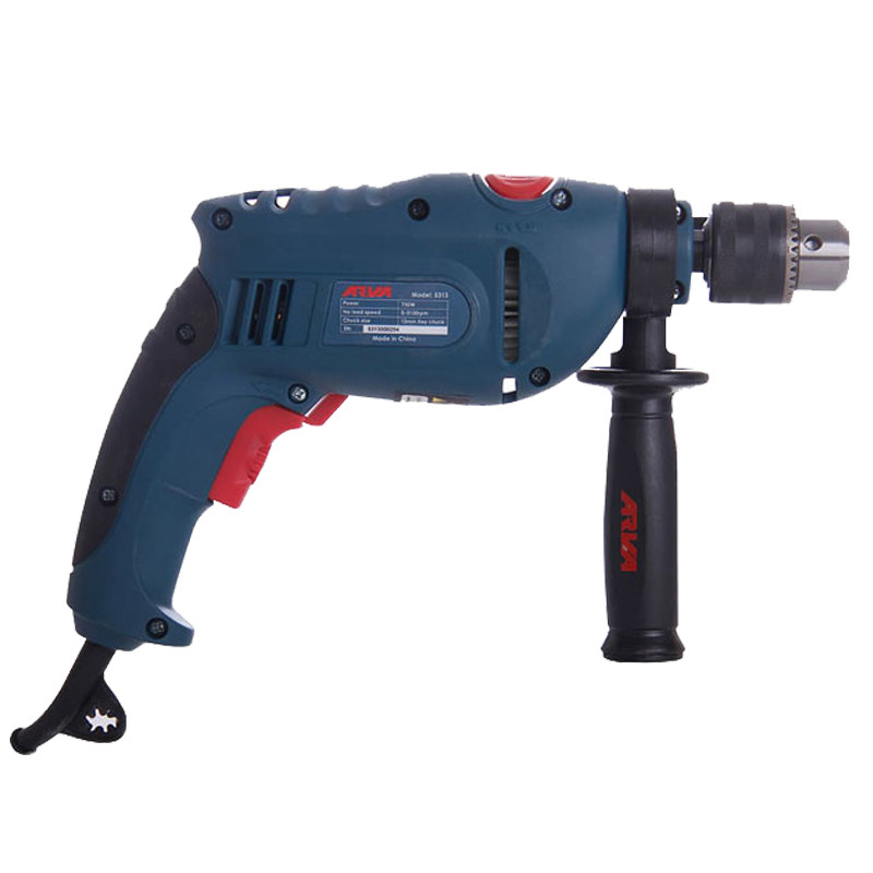 دریل یک ابزار برقی است که از آن جهت سوراخکاری روی سطوح مختلف استفاده می شود و دارای مصارف صنعتی، نیمه صنعتی و خانگی است. دریل چکشی آروا مدل 5313 یکی از انواع دریل است که با توان 750 وات، دارای سرعت بی باری 3100 دور بر دقیقه است که توان و سرعت بالایی در انجام کارهای سوراخکاری به وجود می آورد. این دریل برقی سه نظام آچاری 13 میلی متری دارد که می تواند روی مواردی مانند چوب، فلز و بتن سوراخکاری کرد. تحمل حرارت بالا یکی از مهم ترین مزیت هایی است که یک دریل می تواند داشته باشد. برای اینکه دریل از این مزیت برخوردار باشد نیاز است که آرمیچر و بالشتک آن 100 مس باشد. دریل چکشی 750 وات 5313 دارای آرمیچر و بالشتک 100% مس است که علاوه بر تحمل حرارت بالا، رسانایی قوی ایجاد کرده و موجب می شود که میدان مغناطیسی بهتری نیز به وجود آید که در کل روی عملکرد موتور بسیار تاثیر گذار است و موجب افزایش طول عمر دستگاه می شوند.