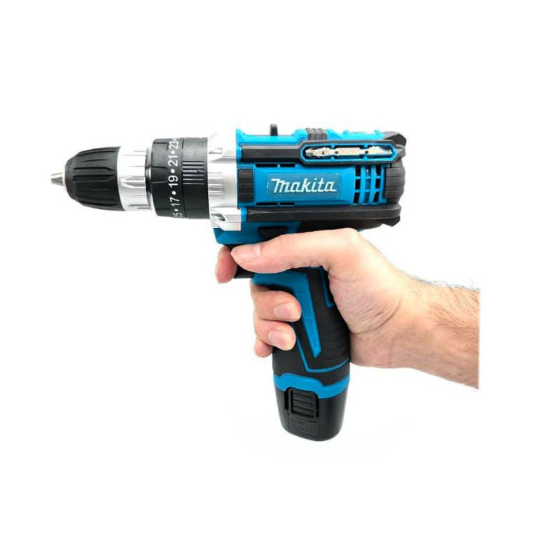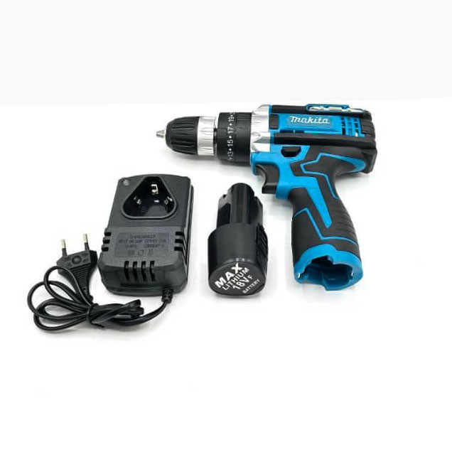 دریل شارژی ۱۸ ولت چکشی طرح ماکیتا که این دریل با مارک برجسته ارائه میگردد و طرح ماکیتا می باشد و تفاوتی با اصل آن دارد همچنان که از نظر قیمتی هم بسیار متفاوت می باشد مشخصات این محصول عبارتند از : چکشی و مارک برجسته و پایه شارژر فست شارژو دارای نشانگر میزان شارژ باتری و یک عدد باتری ۱۸ ولت و گیربکس دو دور و دور ۰تا ۳۵۰ و ۰ تا ۱۴۰۰ دور بر دقیقه و قابلیت کنترل سرعت فشاری و باتری استاندارد ( قابل استفاده در کلیه دستگاه های بازار) و چراغ قوه روی بدنه دستگاه جهت محیط های کم نور و موتور تمام مس می باشند