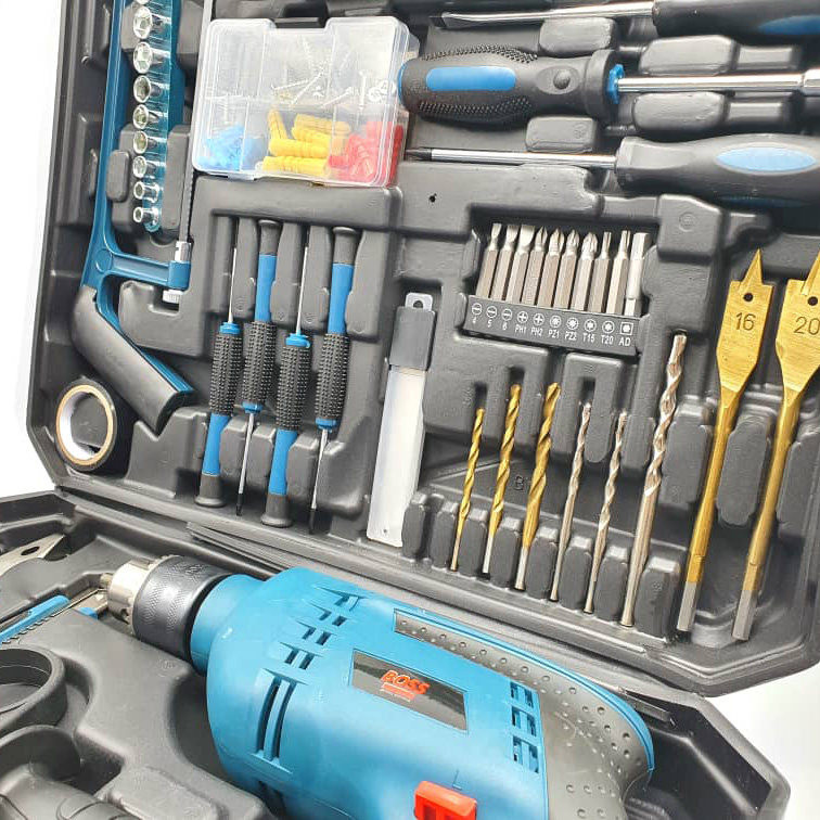 ✔ این مجموعه دارای پکیجی ابزاری 100 عددی جهت امور خانگی و اداری و تعمیرات خانگی می باشد ✔ این مجموعه دارای دریل 850 وات چکشی، دارای دیمر و چپگرد و راستگرد می باشد ✔ دارای کلیه ابزارهای مصرفی شامل؛ آچار فرانسه سایز8، انبردست، دمباریک، چکش، بکس تک سایز 4 تا 13، متر 3 متری، پیچ گوشتی دوسو و چهارسو سایز بزرگ، پیچ گوشتی نوک خور، مته آهن سایز 5 و 6 و 8، مته دیوار سایز 5 ،6 و 8، مته برگی سایز 12 و 16، 9 عدد نوک پیچ گوشتی، تبدیل نوک پیچ گوشتی به بکس چسب برق، کاتر، فازمتر دیجیتال، آچار سه نظام، 5 عدد تیغ کاتر، دو سایز پیچ گوشتی موبایلی دو سو و دو سایز پیچ گوشتی موبایلی چهارسو، کمان اره چوب و فلز، مجموعه سایزبندی پیچ و رولپلاک ✔ مجموعه ای کارا و مناسب جهت امور خانگی ✔ همراه کیف BMC حرفه ای