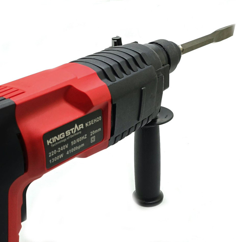 در حوزه ساخت و تولید ابزارآلات دریل، دریل ها برحسب موارد مصرف در بخش خانگی و صنعتی دریلها در ابعاد و انواع مختلف از جمله معمولی، چکشی و تخریب تولید میشوند. یکی از برندهای معروف در این زمینه، دریل بتن کن شرکت کینگ استار (KING STAR) می باشد. دریل بتنکن کینگ استار با طراحی بسیار زیبا و جدید خود جهت تخریب انواع مصالح ساختمانی به بازار عرضه شده است. با وجود دکمهای که روی بدنه تعبیه شده است، میتوانید دستگاه را به دریل معمولی و چکش نیز تبدیل کنید. در این مدل دریل بتن کن شما می توانید با قرار دادن دستگاه در حالت معمولی و چکش ، از سرعت گردش آزادی برابر تا 4100 دور در دقیقه بهرهمند شوید. در این حالت شما قادر هستید تا عملیات سوراخکاری را بر روی انواع سطوح چوبی، فلزی و بتنی بهراحتی انجام دهید. چنانچه دریل را در حالت تخریب قرار دهید، دستگاه قادر است با این نرخ ضربه بالا نیز میتوان انواع مصالح ساختمانی را تخریب کرد. موتور این بتن کن دارای توانی برابر با 1300 وات داشته که در مقایسه با محصولات مشابه در بازار از قدرت قابلقبولی برخوردار است.