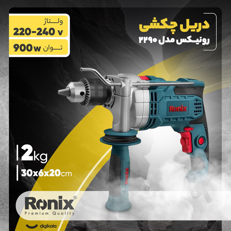دریل چکشی نیمتنهفلزی 2290 رونیکس، انتخابی مطمئن، حرفهای و بیرقیب در تمامی کاربردهای فوق صنعتی است. این دستگاه، مجهز به موتور کارآمد و قدرتمند 900 وات است و با طراحی مهندسی و دوام بالا، عملکرد فوقالعادهای را در سختترین مواد و مصالح از خود نشان میدهد. این موتور فوق صنعتی، قادر است سرعتی بالغ بر 2800 دور در دقیقه را ایجاد کند. سهنظام آچاری 13 میلیمتری این دریل، تمامفلزی و بسیار مستحکم است و بهترین کارایی را به این دستگاه میبخشد. طراحی فوقالعاده زیبا و ارگونومیک بدنه، از مهمترین ویژگیهایی است که دریل چکشی 2290 رونیکس را از سایر رقبای خود متمایز کرده و محبوبیت این ابزار را برای کاربران صنایع مختلف دوچندان میکند. اگر به دنبال یک دریل چکشی و فوق صنعتی با عملکردی بینظیر هستید، کافی است نگاهی به محصولات موجود در بازار بیندازید و خودتان مقایسه کنید! قطعا به تمایزهای بین دریل چکشی نیمتنه فلزی 2290 رونیکس و سایر محصولات مشابه پی میبرید. پس با خرید دریل چکشی 2290 رونیکس، برای همیشه تجربه استفاده از یک محصول کارآمد و بینظیر را در ذهن خود ثبت کنید.