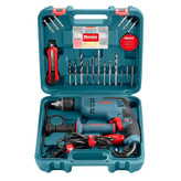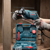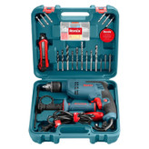 مجموعه ای ازابزارهای متنوع ومفید برای استفاده درمصارف خانگی و صنعتی. مجموعه ای متنوع از اندازه ها و انواع بیت ها، مته های پیچشی، مته های بنایی و غیره با کاربردهای متنوع وگسترده. ساخته شده از مواد با کیفیت بالا، سختکاری شده با استحکام و سختی باال و مقاوم در برابر خوردگی. حاوی ابزارهای پرکاربرد مانند کاتر، متر و رابط بکس. بسته بندی شده درکیف ضد ضربه با قابلیت حمل و جا به جایی آسان. مجهز به یک عدد دریل چکشی750 واتی قدرتمند که بهترین عملکرد را در سوراخ کاری. عادی و چکشی دارد. قابلیت استفاده از دریل در صنایع چوبی، فلزی و ساختمانی.