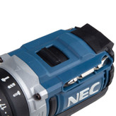 دستگاهی که در تصویر مشاهده میکنید توسط شرکت معتبر ان ای سی (NEC) تولید میشود. با کمک این دستگاه میتوان فرایند سوراخکاری و باز و بسته کردن پیچها را به خوبی انجام داد. این دستگاه مدل (NEC 1515) نام دارد و در گروه دستگاههای شارژی قرار میگیرد. محصول فوق نیروی خود را از طریق یک باتری12 ولتی تامین میکند. این باتری از نوع لیتیوم کره بوده و ظرفیتی برابر 2 آمپرساعت دارد. سرعت گردش این دستگاه قابل تنظیم است و کاربر با تغییر میزان فشار انگشت خود روی شستی میتواند آن را تغییر دهد. این سرعت در دو بازهی 400-0 و 1400-0 دور بر دقیقه قرار دارد. سرعت اول برای باز و بسته کردن پیچ مورد استفاده قرار میگیرد و سرعت دوم برای انجام سوراخکاری مناسب است. یکی از نقاط قوت این دستگاه حالت ضربهای دریل آن است. این حالت در سوراخکاری سطوح سخت، به کاربر کمک زیادی میکند و نرخ ضربهی آن بین بازهی 400-0 و 1450-0 ضربه در دقیقه قرار دارد. سه نظام به کار رفته در ساخت این دستگاه از نوع 10 میلیمتری خودکار بوده و حداکثر قطر سوراخکاری آن در چوب، فلز و مصالح به ترتیب برابر 18، 10 و 10 میلیمتر است. این دریل پیچگوشتی دارای لامپی ال ای دی بوده که موجب روشن شدن سطح مورد نظر میشود. دستهی محصول فوق به شکلی ارگونومیک طراحی شده و به روکشی ضد لغزش مجهز است.