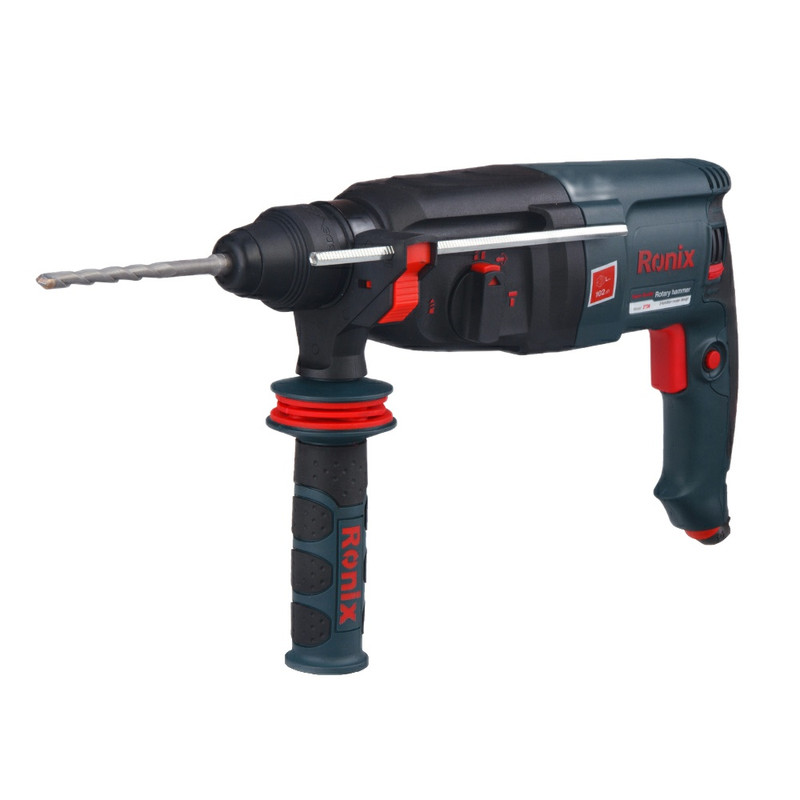 شرکت رونیکس Ronix با ارائه چندین مدل دریل بتن کن در کلاس ها و وزن های مختلف، انتخاب یک دریل بتن کن مناسب را برای مشتریان راحت تر کرده است. دستگاه پیش روی شما که جزو سبک ترین مدل های بتن کن و مناسب کارهای نصب در پروژه های ساختمانی میباشد مدل 2726 رونیکس است و با وزن 3 کیلوگرم و ابعاد 41 × 28 × 12 سانتیمتر، یک دریل بتن کن ضربهای با قدرت 850 وات است که در کلاس خود جزو قویترینهاست. سرعت این دریل در حالت بی باری تا 1200 دور بر دقیقه میرسد و دارای قابلیت کنترل سرعت است. این دستگاه هم برای مصارف خانگی و هم برای استفاده در کارگاههای ساختمانی و صنعتی بسیار مناسب است. این دریل توانایی سوراخکاری در چوب، فلز و بتون را دارد و حداکثر قطر سوراخ در این دستگاه در چوب، فلز و مصالح، به ترتیب 30، 13 و 26 میلیمتر است و برای تعویض مته نیازی به آچار ندارد و با ضامن موجود در گلویی دستگاه به سادگی انجام پذیر است. بتن کن 2726 از متریال درجه 1 و تحت استانداردهای روز اروپا توسط شرکت خوش نام رونیکس ساخته و به بازار ارائه گردیده است. از دیگر مزایای این دستگاه کلید چپ گرد راستگرد آن است که در انتهای دستگاه به گونه ای تعبیه گردیده که به سهولت از دو طرف دستگاه قابل تغییر است. .علاوه بر این، برخلاف مدلهای دیگر که کلید چپگرد راستگرد آنها روی شاسی دستگاه نصب شده است از مقاومت بالایی برخوردار است. علاوه بر این 2726 دارای دسته آنتی شوک نیز میباشد که از انتقال لرزش و ضربات به کاربر در حین کار جلوگیری به عمل می آورد.