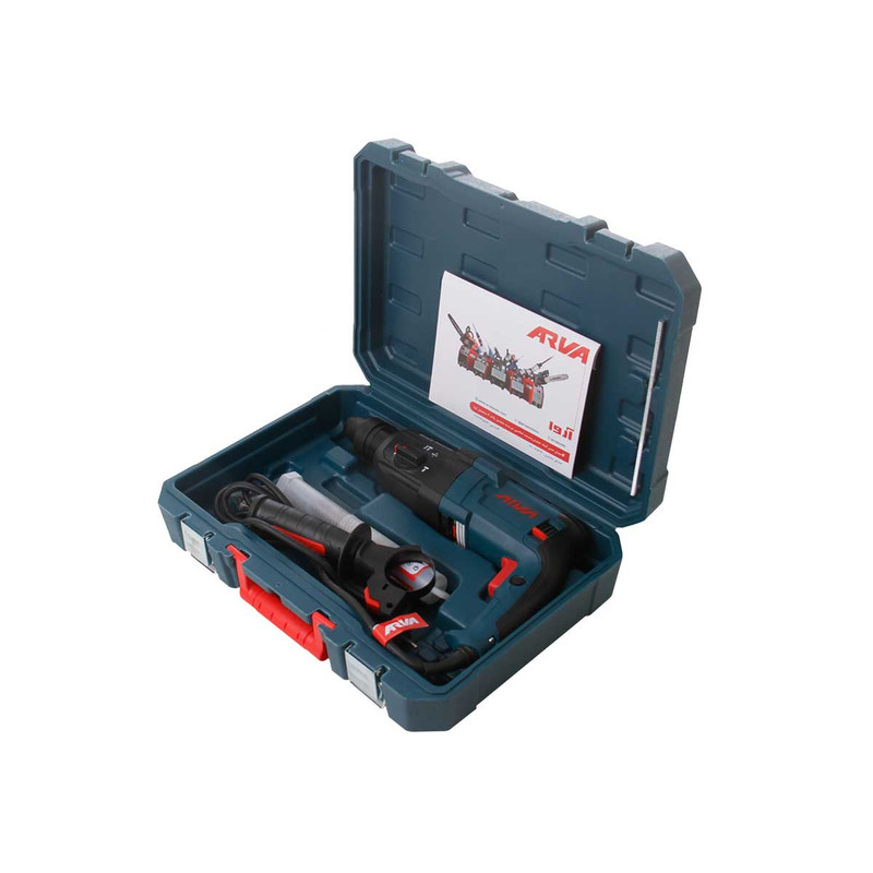 مشخصات داخلی بتن کن 3 کیلویی 5271 یکی از عوامل مهمی که در خرید بتن کن باید به آن دقت کنید مشخصات و ویژگی های موتور دستگاه است. بتن کن آروا 5271 یک دستگاه 3 کیلویی با توان 850 وات است و قدرت ضربه 3.5 ژول و سرعت ضربه 5100 ضربه بر دقیقه دارد. این دستگاه از سیستم قلم گیر 4 شیار یا همان SDS PLUS استفاده می کند و برای کارهای تخریب و سوراخکاری مورد استفاده قرار می گیرد. علاوه بر تمام موارد آرمیچر دریل بتن کن آروا مدل 5271 نخ بندی شده است و سیم پیچی آن 100% مس می باشد. وجود این ویژگی موجب حفظ فرم موتور در دور بالا و تحمل حرارتی 220 درجه می شود که طول عمر و کارایی دستگاه را افزایش می دهد. ویژگی هایی که موجب افزایش کارایی بتن کن 5271 می شود بعد از توجه به ویژگی های داخلی بتن کن 3 کیلویی 5271، نوبت به بیان ویژگی هایی می رسد که موجب راحتی شما به هنگام کار می شود و کارایی دستگاه را بالا می برد این ویژگی ها شامل موارد زیر است. کلید تغییر حالت: توسط این کلید می توان دستگاه را در سه حالت چرخش ضربه، فقط ضربه و فقط چرخش تنظیم کرد. دسته جانبی با قابلیت چرخش 360 درجه: وزن بتن کن ها نسبت به یک سری از ابزار آلات صنعتی دیگر بیشتر است و وجود دسته جانبی با قابلیت چرخش 360 درجه موجب راحتی به هنگام استفاده از دستگاه می شود و دقت در کار را نیز بالا می برد چون تسلط بهتری روی دستگاه دارید. طراحی ارگونومیک و ضد لرزش: داشتن طراحی بدنه ارگونومیک و دسته ضد لرزش موجب افزایش راحتی شما به هنگام کار می شود و در نتیجه کار با دقت و کیفیت بالاتری انجام خواهد شد. ویژگی های مربوط به ایمنی دریل بتن کن آروا مدل 5271 با هر وسیله ای که کار می کنیم مخصوصا ابزار های صنعتی، ایمنی بسیار اهمیت دارد. به همین خاطر برخی تکنولوژی ها و ویژگی ها در دستگاه بتن کن مدل 5271 موجب افزایش ایمنی می شود که در ادامه معرفی می کنیم. سیستم کلاچ ایمنی: ممکن است در حین عملیات سوراخکاری یا تخریب، مته در قطعه کار گیر کند؛ در این زمان سیستم کلاچ ایمنی فعال می شود و نیروی که موجب چرخش مته می شود دیگر به کاربر انتقال داده نمی شود و دستگاه به صورت خودکار قطع می شود. این مزیت موجب افزایش ایمنی در هنگام کار با دستگاه می شود.
