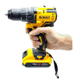 با سلام خدمت مشتریان محترم مشخصات دریل شارژی چکشی 36 ولت دو باتری با لوازم طرح دیوالت: این دریل شارژی طرح دیوالت می باشد قطعا کیفیت این دریل با دیوالت اصلی بسیار متفاوت می باشد همانگونه که قیمت آن هم بسیار تفاوت دلرد این محصول ساخت کشور چین می باشد که دارای ترک متر (هرزگرد) 25 پله ای و دارای 2 سرعت می باشد این محصول دارای کلید چپ گرد و راست گرد و نیز کلید گازی(با فشار دست سرعت کم و زیاد می شود ) می باشد همچنین باطری های این محصول 36 ولت بوده و دارای نشانگر میزان شارژی می باشد کیفیت خوبی برخوردار است که دارای کیف مستحکم و دارای شارزر پایه دار و باطری اظافی می باشد یکی از ابزارهای کارامد در بخش تعمیرات و نگهداری منازل و کارگاه ها، مجموعه دریل پیچ گوشتی شارژی می باشد که به عنوان یک نیاز مهم در این بخش مورد توجه قرار گرفته است. مجموعه 28 عددی دریل پیچ گوشتی شارژی 36 ولت برند دیوالت از موتوری قدرتمند با حداکثر سرعت گردش آزاد معادل با450 و 1650 دور بر دقیقه برخوردار میباشد. طراحی موتور دستگاه بهگونهای است که کاربران میتوانند سرعت دریل را از طریق دکمه تعبیه شده در بالای دریل تغییر دهند. علاوه بر این کلید گازی مشکی رنگ نیز امکان تنظیم سرعت چرخش سهنظام را برای استفادهکنندگان فراهم میکند. طراحی ارگونومی پیشرفته و سبکی این دریل شارژی (وزن دریل کمتر از 1.2 کیلو گرم) مزیت مهمی در بهبود کیفیت کار و جلوگیری از خستگی موثر بهشمار میرود و آن را برای انواع استفادههای خانگی و کارگاهی مناسب می نماید. همچنین دریل پیچ گوشتی شارژی اوکی دارای تورکمتر 3+18 حالته (با امکان انتخاب حالت، پیچ و دریل) و کلید تغییر جهت (چپگرد و راستگرد) میباشد .این محصول دارای دو باتری 36 ولت با حداکثر ظرفیت 2000 میلی آمپر بر ساعت و یک عدد شارژر فست شارژ داخل یک کیف BMC مستحکم قرار دارد.