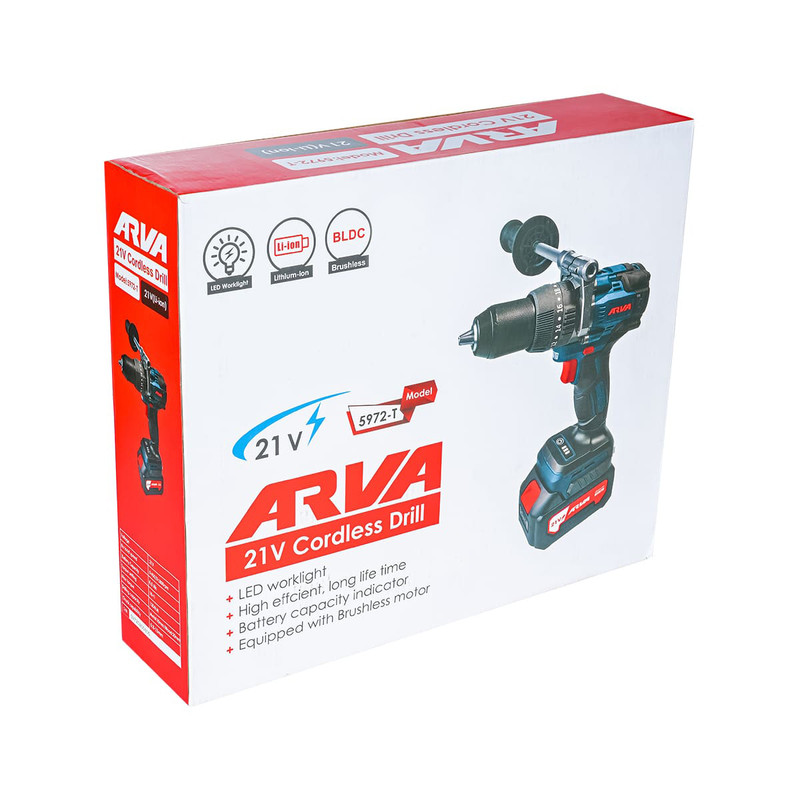دریل چکشی براشلس سه نظام خودکار 13 میلی متر 21 ولت آروا مدل 5972T