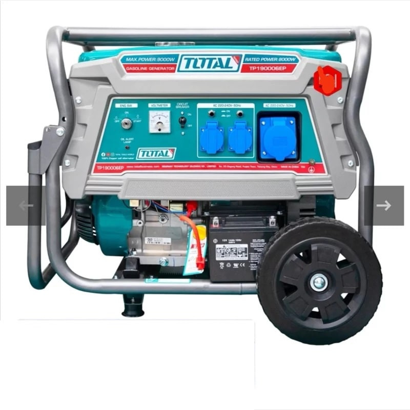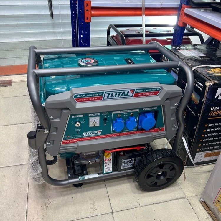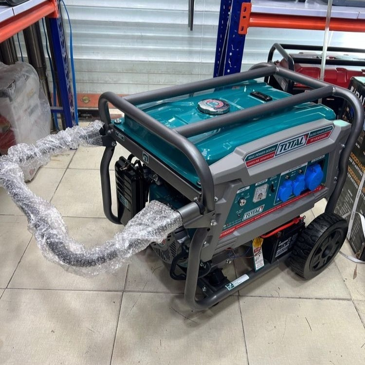 موتور برق بنزینی 9 کیلووات توتال مدل TOTAL TP190006EP یکی از قدرتمندترین ژنراتورهای قابل حمل بازار است که برای تأمین برق در پروژههای عمرانی، کارگاههای صنعتی و حتی مصارف خانگی در شرایط قطع برق طراحی شده است. این دستگاه با ترکیب کیفیت ساخت بالا، عملکرد پایدار و قیمت رقابتی، انتخابی هوشمندانه برای حرفهایها و کاربران پرمصرف به شمار میرود. با توان خروجی 9000 وات، این موتور برق قادر است چندین دستگاه پرمصرف مانند دستگاه جوش، کمپرسور هوا، کولر گازی، و تجهیزات ساختمانی را همزمان پشتیبانی کند. سیستم AVR داخلی از نوسانات ولتاژ جلوگیری میکند و پایداری برق خروجی را تضمین میکند؛ موضوعی حیاتی برای دستگاههای حساس الکترونیکی. وجود سیستم استارت الکتریکی باعث سهولت در راهاندازی دستگاه میشود و در صورت نبود باتری یا خرابی استارتر، میتوان از استارت دستی (هندلی) استفاده کرد. مخزن 25 لیتری امکان استفاده طولانیمدت تا حدود 8-10 ساعت با یک باک کامل را فراهم میکند؛ مناسب برای پروژههای بدون دسترسی به برق شهری. طراحی بدنه مقاوم در برابر ضربه و شرایط محیطی همراه با دستهها و چرخهای متحرک، حمل و نقل و نگهداری این موتور برق را بسیار آسان میکند. این محصول جهت استفاده در پروژههای عمرانی و ساختمانی، تأمین برق کارگاههای صنعتی و جوشکاری، پشتیبان برق منازل و ویلاها در زمان قطعی، کامیونهای خوراکدهی دام و دستگاههای سیار کاربرد دارد. مشخصات فنی این موتور برق عبارتند از: قدرت موتور: ۱۸ اسب بخار، حجم موتور: 457 سیسی، نوع موتور: هوا خنک، تک سیلندر، چهار زمانه، توان ماکسیمم: 9 کیلووات، توان دائم: ۸ کیلووات، تک سیلندر، تک فاز ، ۵۰ هرتز، ولتاژ خروجی: ۲۲۰ ولت الی 240 ولت AC و ۱۲ ولت DC، آمپر خروجی : 40.5 آمپر AC و ۸.۳ آمپر DC، ظرفیت روغن: ۱.۱ لیتر، ظرفیت سوخت: ۲۵ لیتر، تثبیت کننده ولتاژ AVR+ : دارد، تنظیم کننده دور موتور (گاورنر) : دارد، نمایشگر آنالوگ: دارد، نمایشگر میزان سوخت: دارد، سنسور سطح روغن: دارد، سنسور حرارتی ژنراتور: ندارد، چرخ و دسته: دارد، باتری: دارد، میزان صدا: 73 دسیبل، دور موتور: ۳۰۰۰ دور در دقیقه، تعداد خروجی برق: ۳ عدد، نوع سوخت: بنزین، نحوهراهاندازی: استارتی/ هندلی، ساعت کار مجاز دستگاه: ۸ الی ۱۰ ساعت، وزن: 92 کیلوگرم و ابعاد آن 79.3*55*58 سانتیمتر می باشد