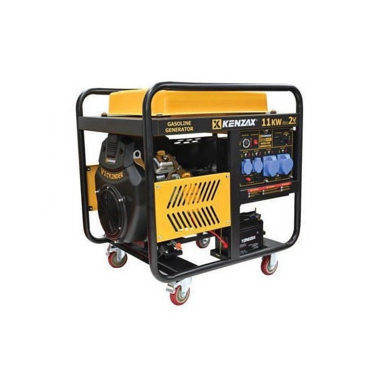 ژنراتور برق بنزینی دو سیلندر کنزاکس مدل 6191، با توان خروجی 11 کیلو وات و موتور چهار زمانهی بنزینی هوا خنک و OHV یکی از پرقدرت ترین و به صرفهترین موتوربرق های موجود در بازار است. موتور برق کنزاکس دارای سیم پیچ 100% مس بوده، این موتور برق دارای سیستم avr(تنظیم ولتاژ خروجی)است،و دارای نمایشگردیجیتال V.F.T است، این موتور برای روشن شدن هم از هندل و استارت و ریموت استارت استفاده کرد حجم موتور این ژنراتور 670 سی سی و حجم مخزن سوخت آن 35 لیتر میباشد. چرخ دار بودن موتورهای برق به دلیل وزن بالایی که دارند جزو الزامات است که در هنگام خرید حتما باید به آن توجه کنید. همراه این مدل از ژنراتورهای کنزاکس 4 عدد چرخ و آچار ارائه میشود.