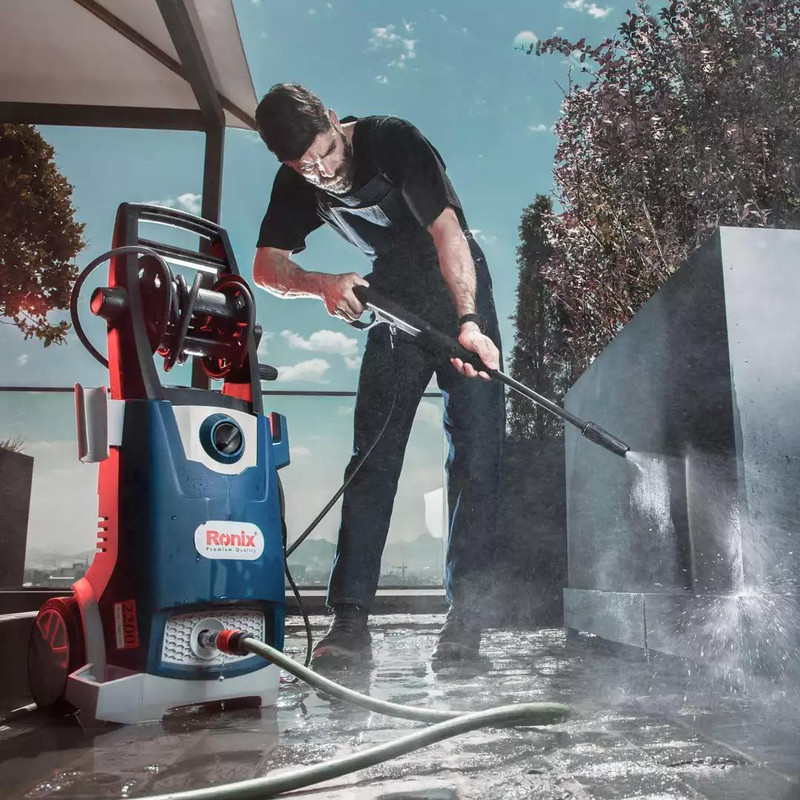 دستگاهی که پیش در تصویر میبینید، کارواش خانگی است که شرکت «رونیکس» (Ronix) تولیدکنندهی آن به شمار میآید. این شرکت این محصول را با نام RP-1160 عرضه میکند. یک موتور قدرتمند، اصلیترین قسمت این دستگاه است که سرعت (دبی) و فشار آب خروجی را تامین میکند. میزان استهلاک دستگاه و موتور بسیار پایین است. جابجایی دستگاه به سهولت انجام میشود. شکل پاشش آب خروجی هم به کمک این لوازم جانبی دستگاه امکانپذیر است. کارواش خانگی مدل RP-1160، دارای یک موتور القایی با قدرت 2200 وات است. این موتور فشار آب خروجی را به 160 بار میرساند. سرعت یا در اصطلاح دبی آب خروجی در حدود 7.3 لیتر بر دقیقه است. طراحی ارگونومیک دستگاه باعث میشود که شما بدون نیاز به کسب کمترین مهارت، از محصول استفاده کنید. برای جمعکردن شلنگ 5 متری هم میتوانید از قرقرهای که به این منظور روی دستگاه قرار دادهشده، کمک بگیرید. برای دستیابی به حد مطلوبتر تمیزی، میتوانید از مواد شوینده در زمان پاشش آب، استفاده کنید. جهت جابجایی آسان و سریع ، یک دستهی پلاستیکی و یک جفت چرخ برای این دستگاه در نظر گرفتهاند. دو لنس قابل تنظیم هم بهعنوان لوازم جانبی، در کنار محصول قرارگرفته است. از دستگاه کارواش خانگی برای نظافت و شستشوی محوطه منزل، محل کار یا شستشوی خودرو و هر وسیلهی نقلیهی دیگر استفاده میکنند. برای استفاده از این دستگاه نیازی به مهارت چندانی نیست. تهیه این محصول کمک بسیار زیادی به کسانی است که اهمیت بیشتری به نظافت و تمیزی میدهند. Ronix کارواش مدل RP-1160 را با موتور 2200 واتی که تامینکنندهی فشار 160 باری آب خروجی است، تولید میکند.