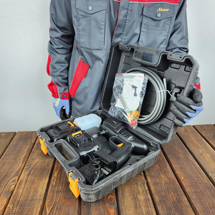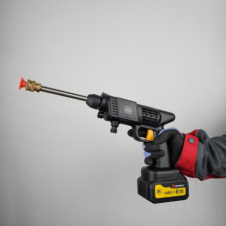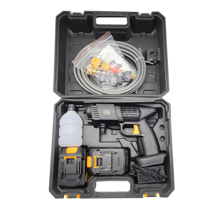 کیف حمل، گان بلند، شلنگ ورودی و یک عدد اتصالات ورودی و فیلتر و دو عدد سری تنظیم پهنای پخش آب (تبدیل قرمز و سفید).