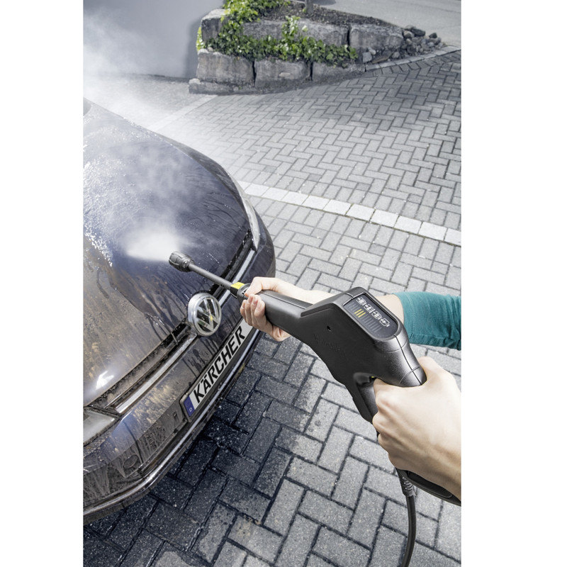 دستگاه فوق یکی از محصولات تولیدی شرکت «کرشر» (Karcher) است که تحتعنوان مدل «Karcher K4 Power Contorol » به بازار عرضه میشود. این دستگاه توانی برابر 1600 وات دارد و حداکثر فشار آب خروجی از آن 120 بار است. این دستگاه قادر است در صورت دسترسینداشتن به شیر آب، از یک مخزن برای تامین آب خروجی خود استفاده کند. شرکت کرشر برای این محصول، شلنگی 7 متری در نظر گرفته است. این کارواش دارای استاندارد IPX5 بوده و دربرابر رطوبت و گردوخاک مقاوم است. به ورودی این کارواش میتوان آب گرم متصل کرد ولی دمای آب ورودی به آن نباید از میزان 40 درجهی سانتیگراد تجاوز کند. این کارواش به دستهی تفنگی هوشند مجهز بوده که در قسمت تعبیهشده روی بدنهی کارواش قرار میگیرد. حداکثر دبی آب این کارواش 380 لیتر در ساعت و دارای مخزن مایه شویندهRM قابل جابجایی است. درون بستهبندی این محصول، یک عدد دسته تفنگی هوشمند که قابلیت کنترل فشار خروجی آب از نوک نازل را می توان به صورت دستی و یا از طریق تلفن همراه تنظیم نمود،دو عدد نازل، قرار دارد.