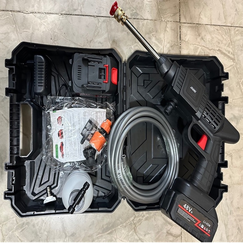 کارواش شارژی خانگی با باطری 88 ولت لیتیومی با قدرت 260 وات است .حسن این دستگاه نسبت به دستگاه های دیگر این است که از سری های برنجی استفاده شده است که نشکن است ودر اثر فشار نمیشکند. حداکثر جریان خروجی سیالات در این کارواش 4 لیتر در دقیقه می باشد و فشار آب در بازه 22 تا 30 بار است. ویژگی کلیدی این کارواش قابلیت تنظیم فشار برای نیازهای مختلف است. از مهم ترین کاربردهای این کارواش می توان به مواردی مثل سمپاشی، تمیزکاری و آبیاری، شستشوی خودرو، پارکینگ، استخر، مبلمان، باغ، دوچرخه و … اشاره کرد. کارواش های شارژی یکی از اقلام ضروری برای در هر خانه به شمار می رود. طراحی این نوع کارواش ها به گونه ای است که بدون نیاز به آب فراوان یا حتی برق می توان از آن استفاده نمود. با استفاده این کارواش می توانید به راحتی و با صرفه جویی در مصرف آب، تنها با یک سطل آب، آبیاری سریع و پرفشاری را در منزل ، باغ ، زمین کشاورزی و … تجربه کنید. . فشار آب این کارواش خانگی در بازه 22 تا 30 بار قرار دارد که ویژگی قابل توجه این کارواش قابلیت تنظیم فشار آن است که می توانید با توجه به نیاز خود و آلودگی محل مورد نظر، آن راتنظیم نمایید. معمولاً فشارهای پایین برای آبیاری گیاهان و فشار بالا برای شستشوی وسایل نقلیه و … مورد استفاده قرار می گیرد. طول پاشش این کارواش تا 5 متر می باشد. باطری های قابل شارژ این کارواش نیز باعث در دسترس بودن همیشگی این کارواش حتی در مکان هایی که به برق دسترسی ندارید شده است.