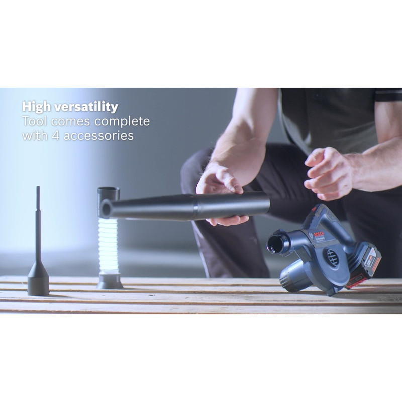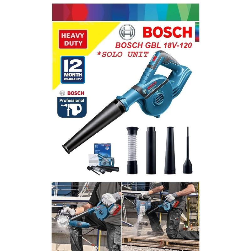 محصول فوق از شرکت المانی بوش و ساخت کشور چین است. این محصول نوعی دستگاه دمنده شارژی بوده که قابلیت کار کردن با تمام باطری های 18 ولت لیتیوم بوش را دارا می باشد. با کمک این دستگاه میتوان باد را با فشاری بالا بهسمت سطح مورد نظر متمرکز کرد. معمولا از این قدرت باد برای تمیز کردن گردوغبار استفاده میشود. برای این کار نازلی پلاستیکی روی دستگاه قرار دارد. سرعت چرخش موتور این دستگاه 17000 دور بر دقیقه بوده و قادر است در مدتزمان یک ساعت 120 متر مکعب هوا را از نازل خود خارج سازد. از دیگر مزایای این محصول میتوان به قابلیت تنظیم سرعت باد خروجی آن اشاره کرد. این دستگاه دمنده را شرکت معروف «بوش» (Bosch) تحت عنوان مدل « GBL 18V-120» به بازار عرضه میکند.