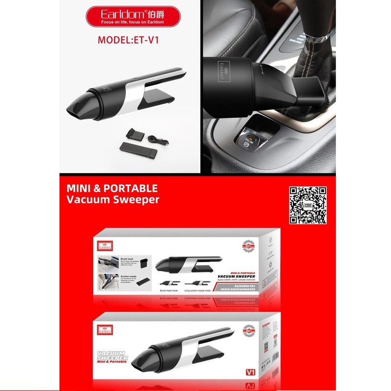 مینی جارو شارژی Earldom مدل ET-V1 مناسب و ایده آل برای تمیز کردن درون خودرو، مکان های غیر قابل دسترس در خانه و محل کار یک محصول مدرن و پر کاربرد که استفاده از آن در هر زمان و هر مکان راحت است. طراحی هوشمند، ابعاد جمع و جور به اندازه 290 x 73 x 73 میلیمتر با دو نوع از سرهای مکشی مختلف شامل سری شبیه مسواک که زباله ها و موارد مختلفی را که به سختی جابجا میشوند جارو کرده و همچنین سری دیگر آن نازل مکش دایره ای برای پاک سازی ترک ها و چاله ها، برای گرد و غبار ، مکیدن موهای سگ و گربه ، برای تمیز کردن سالن ها ، بالشتک های صندلی و کف ماشین … مناسب است. طراحی دسته دار و وزن سبک با نازل انعطاف پذیر دستگاه، براحتی میتواند به شکافهای کوچک نفوذ کند تا گرد و غبار را براحتی تمیز کند. از دیگر ویژگی های مینی جارو شارژی Earldom مدل ET-V1 استفاده ساده و آسان، ساخته شده از مواد بادوام ، طراحی زیبا بصورت وایرلس و بی سیم که توسط یک باطری 4000 میلی آمپر با ولتاژ 3.7 ولت با توان کلی 80 وات می باشد، که به 2.5 ساعت زمان برای شارژ احتیاج دارد و با هر بار شارژ میتوان بین 13- 15 دقیقه قابلیت استفاده را دارد. وجود یک کابل شارژ USB-TypeC جهت شارژ سریع دستگاه به همراه آن ارائه شده است. برای شارژ دستگاه بهتر است از شارژ های خانگی 5V/2A استفاده کنید حتی شما میتوانید این جارو را با فندک اتومبیل شارژ کنید. همجنین از مشخصات که باید هنگام خرید این جاروی بیسیم قدرت مکش حداکثر 5.3kpa و با ظرفیت سطل آشغال 120 میلی لیتر میباشد. علاوه بر عملکرد اصلی جاروبرقی بر روی OTO ، میتوانید به طور کامل از محصول برای جارو برقی در سطوح مختلف مانند سطح صفحه کلید کامپیوتر ، شکافهای تاشو روی میز یا جارو برقی روی پنجره های اتاق خود استفاده کنید.