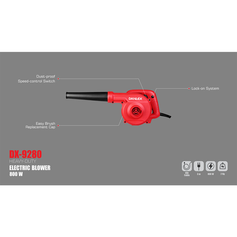 بلوور برقی دستگاهی است که با انرژی گازهایی بیرون میدهد تا فشار و سرعت را افزایش دهد. بلوورها در اندازههای بزرگ برای کاربریهایی مانند ماشین آلات تولید و اتاقهای تمیز و در اندازههای کوچک تعبیه شده درون دستگاههایی مانند لوازم خانگی یا کامپیوترهای شخصی عرضه میشوند و برای تهویه هوا یا خنک کردن به کار میروند. موتور 800 وات پر قدرت بلوور برقی دنلکس DX-9280 با ولتاژ 220 ولت کار میکند. نیروی مورد نیاز برای عملکردهای دمیدن و مکیدن توسط این موتور تامین میشود. سرعت در حالت آزاد این دستگاه 16000 دور در دقیقه است که آن را تبدیل به یک ابزار سریع و باور نکردنی کرده است. بلوور برقی یک وسیله الکتریکی ساده و کارآمد است که در منازل و صنایع برای زدودن گرد و غبار از هر گوشه و کناری استفاده میشود. علاوه بر این برای دستگاهها و وسایل الکترونیکی که قطعات ظریفی دارند و با پارچه تمیز نمیشوند هم بسیار کاربردی است. دیمر کنترل سرعت این دستگاه، قابلیت تنظیم 6 سرعت مختلف برای تطبیق آن با کارهای مختلف را فراهم میکند. برای رسیدن به بالاترین سرعت پیچ کنترل سرعت را در جهت عقربههای ساعت بچرخانید. این کلید امکان قفل شدن روی وضعیت ON برای استفاده طولانی مدت را فراهم میکند. کافیست برای عملکرد مستمر دکمه سوئیچ را فشار دهیم سپس دکمه قفل کن کلید را فشار دهیم و سوئیچ را آزاد کنیم. این عملکرد از خستگی کاربر میکاهد. در زمان کار با بلوور برقی در حالت مکش، نازل هوا را به همراه برگ و یا گرد و غبار به داخل میکشد که همه آنها داخل یک کیسه غبار متصل به دستگاه جمعآوری میشوند.