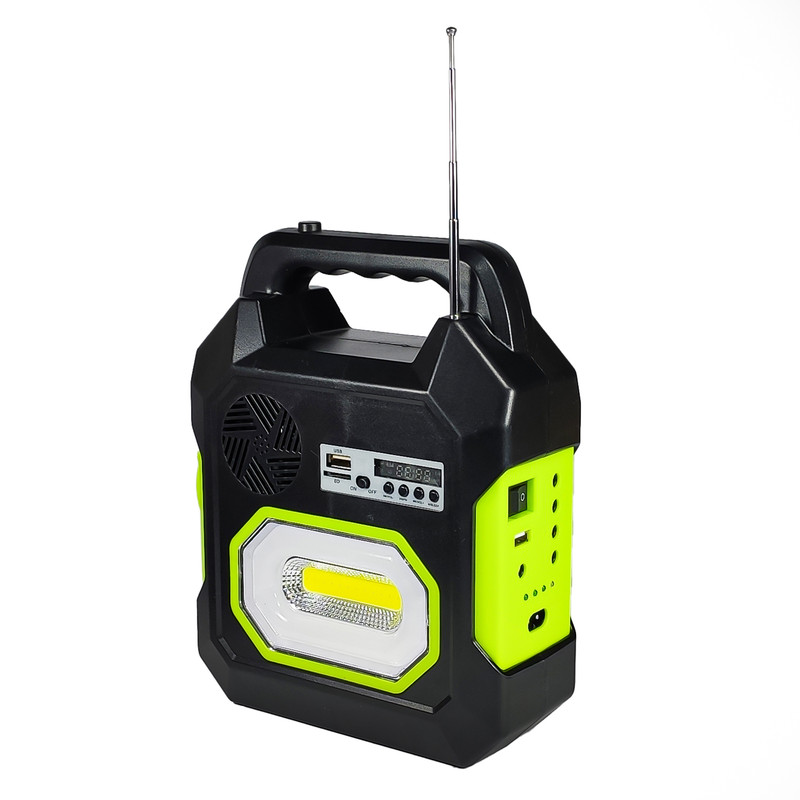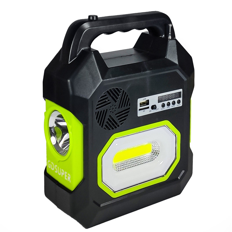 بهره برداری از انرژی های نو و پاک روز به روز در حال افزایش است که خود موجب بهتر شدن شرایط زیست در کره زمین می شود . یکی از این گونه های انرژی پاک ، انرژی خورشیدی است که به دو روش تولید می شود که یکی در نیروگاههای حرارتی خورشیدی و دومین روش ، تولید برق در نیروگاه های با پنل های خورشیدی می باشد . در ابعاد کوچکتر می توان از این انرژی با پنل خورشیدی بهره گرفته و انرژی الکتریکی تولید شده را در باتری های شارژی ذخیره کرد و به هنگام نیاز ، از آن بهره گرفت . سیستم خورشیدی GDSUPER مدل GD-15 یکی از این دستگاهها است که از یک دستگاه اصلی با 2 منبع روشنایی بر روی خود که یک عدد بصورت چراغ قوه در قسمت مقابل و دو منبع بصورت یک لامپ ال ای دی COB و لامپ مهتابی در قسمت جانبی آن قرار دارد ، تشکیل شده است . یک پنل خورشیدی 9 ولتی با توان 3.5 وات از اجزای دیگر این سامانه است که با سیم 4 متری و یک فیش در انتهای آن ، قابلیت اتصال به دستگاه اصلی را داشته و درصورت قرار گرفتن در مقابل نور مستقیم خورشید ، توان لحظه ای 3.5 وات را در دستگاه شارژ می کند . همچنین 3 عدد لامپ ال ای دی با سیم 4 متری و کلید ، در جعبه دستگاه قرار دارد که با اتصال به دستگاه اصلی می توان از روشنایی آن برخوردار شد . .همچنین این دستگاه دارای یک سیستم صوتی برای پخش فایل های صوتی از طریق بلوتوث یا فلش مموری و کارت حافظه نیز می باشد که آن را به یک دستگاه کامل برای پیک نیک تبدیل کرده است که با داشتن پاور بانک و امکان شارژ موبایل و دستگاههای مشابه که با کابل شارژ چند کاره همراه و یا هر کابل دلخواهی انجام می شود این دستگاه یک وسیله ضروری و مورد نیاز در سفر و پیک نیک شده و استفاده از آن اجتناب ناپذیر خواهد بود .