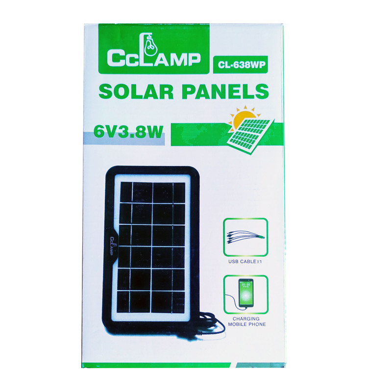 پنل سولار جهت تولید جریان الکتریکی از انرژی خورشید مورد استفاده قرار میگیرد. پنل 3.8 وات حاضر که تولید شرکت سی سی لمپ (CCLamp) می باشد، جهت استفاده های محدود مانند شارژ تلفن همراه و موارد اینچنینی بسار مناسب می باشد. راندمان این پنل 16.5 درصد و از نوع پنل های پلی کریستال می باشد. این محصول یکی از وسایل مورد نیاز برای مسافرت و یا کمپینگ می باشد. که بدون نیاز به پاور بانک گوشی شما را شارژ می کند.