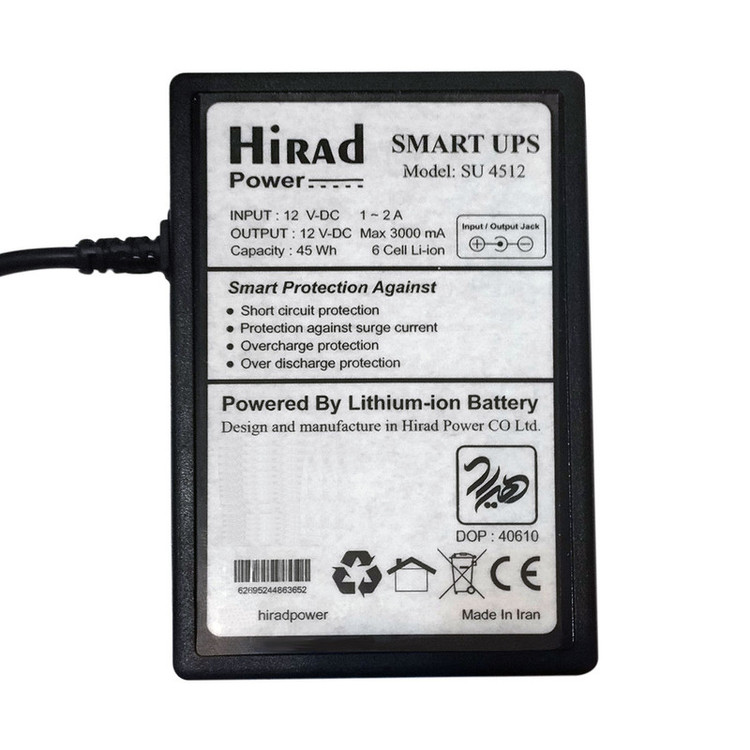 یو پی اس SU-4512 یکی از قوی ترین و مقرون به صرفه ترین منابع تغذیه اضطراری تولید شده برند هیراد می باشد . این UPS مناسب برای مودم ها ، دوربین های مدار بسته ، پوزهای فروشگاهی و کلیه وسایل کاربردی با ورودی برق 12 ولت می باشد . این یو پی اس بصورت هوشمند ( ONLINE ) عملکرده و در هنگام قطع برق بدون وقفه و اختلال در عملکرد دستگاه متصل ، برق ذخیره شده در خود را به آن دستگاه انتقال می دهد در طراحی بخش الکترونیکی آن ، استاندارد های لازم مطابق با کشورهای اروپایی لحاظ گردیده که از آن موارد می توان 1- به محافظت از اتصال کوتاه ، 2- محافظت در برابر جریان اضافه، 3- محافظت در برابر اضافه شارژ باتری اشاره کرد. وصل کردن این یو پی اس بسیار ساده است . ابتدا آداپتور وسیله خود ( مودم یا دوربین مداربسته یا هر وسیله ای که هست ) را از آن وسیله جدا و به ورودی این یو پی اس متصل کنید. سپس کابل خروجی یو پی اس را به دستگاه خود متصل کنید و در آخر دکمه روی یو پی اس را روشن کنید و تمام . اکنون همه چیز بصورت اتوماتیک انجام می شود . هر وقت برق قطع شود ، دیگر شما متوجه قطعی آن نخواهید شد . یو پی اس بصورت آنلاین ، خود را جایگزین برق خواهد کرد و هنگامی که برق شهر وصل شود بصورت اتوماتیک خود را شارژ خواهد کرد . رعایت این استانداردها باعث محافظت از دستگاه شما و همچنین بهبود عملکرد یو پی اس می گردد و در نتیجه دوام و افزایش طول عمر آنها را ضمانت می نماید . ولتاژ ورودی و خروجی این یو پی اس 12 ولت می باشد و مناسب برای طیف گسترده ای از دستگاه های کاربردی از جمله انواع مودم (ADSL ، سیمکارتی ، فیبر نوری ) ، انواع دستگاه پوز فروشگاهی ، دوربین های مدار بسته ، تلفن های بی سیم و غیره می باشد .