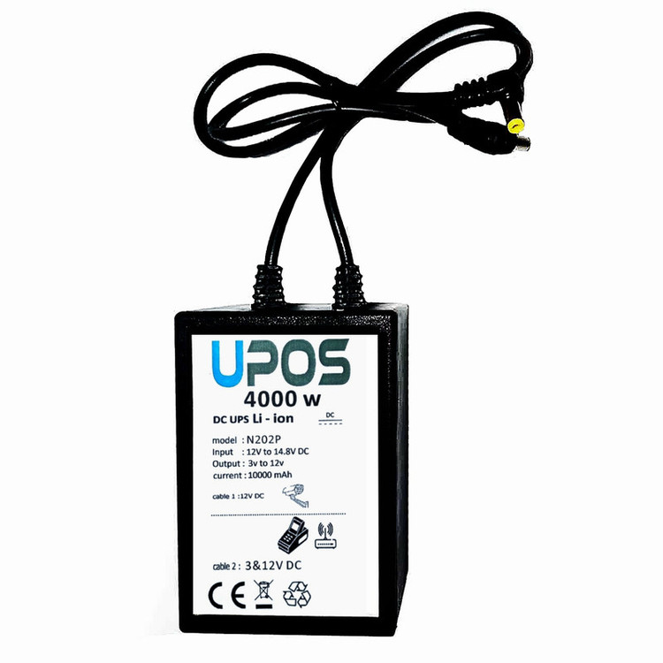 دستگاه یوپوز 4000 دارای باتری های لیتیوم 9000 میلی آمپر برخلاف دستگاه های رایج بازار دارای یک خروجی مجزای ۱۲ ولت و یک خروجی مجزای قابل تغیر توسط کاربر بوسیله ولوم قرارداده شده بروی دستگاه از ۳ ولت تا ۱۲ ولت است.فیش های خروجی ۹۰ درجه پرسی با طول سیم ۱۰۰ سانتیمتری تمام مس استاندارد قادر به راه اندازی انواع دستگاه های ۳ الی ۱۲ ولت مانند انواع کارت خوان ۹ و ۱۲ ولت،مودم های ۵ ، ۹ و ۱۲ ولت ، سوئیچ شبکه ، دوربین مداربسته ،میکروفن های بی سیم ،بیبی کم ، دستگاه آرایشی کاشت ناخن ، دستگاه تاتو ،ترازو دیجیتال ۶ و ۱۲ ولت و ... می باشد. در صورت اتصال دستگاه کارت خوان به باتری شارژی یوپوز 4000 این توانایی را دارد بیش از 250 تراکنش با چاپ و وضوح بالا و راه اندازی انواع مودم به مدت بیش از ۴ ساعت برای شما مصرف کننده گرامی تامین نماید.