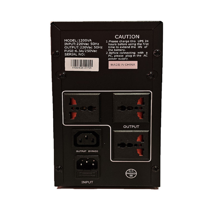 دستگاه یو پی اس پاور مکسما مدل MA1200 با بدنه فلزی و تکنولوژی لاین اینتراکتیو و ظرفیت 1200 ولت آمپر ، دارای دو عدد باتری داخلی 12 ولت 7 آمپر و ۳ خروجی استاندارد 220 ولت و یک خروجی بک تو بک میباشد. همچنین دارای استابلایزر برای جلوگیری از نوسانات برق و کلید مکانیکی روشن و خاموش جهت روشن و خاموش کردن کلی دستگاه میباشد. این دستگاه پاسخگوی نیاز شما برای سیستم های کامپیوتر و دوربین های مداربسته و کرکره برقی و جک های هیدرولیک در هنگام قطعی برق میباشد.