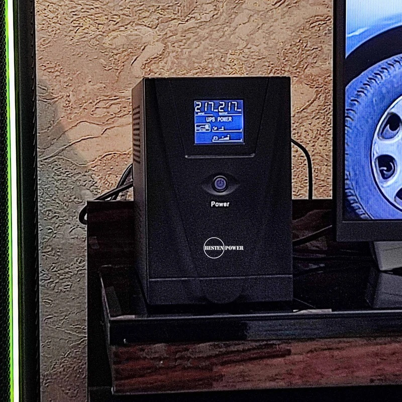 یو پی اس BESETN POWER مدل آفلاین با توان 1000 ولت آمپر و با 2 عدد باتری داخلی 9 آمپر ساعتی 12 ولتی از نوع آفلاین با موج خروجی شبه سینوسی است همراه با نمایشگر LCD پارامتر های الکتریکی است. آنچه شاخصه ی برند بستن پاور است تضمین کیفیت، کارایی و دسترس پذیری محصول است که آن را یک UPS فوق العاده کاربردی برای مصارف خانگی، ادارات، اماکن و فروشگاه های کوچک کرده است. این محصول با باتری داخلی نهایتا 1 تا یک ساعت و ربع برای کامپیوترهای خانگی، 1 ساعت و نیم برای سیستمهای امنیتی با 4 عدد دوربین و برای روشنایی 2 ساعته 3 عدد لامپ LED، دستگاه های پوز بانکی و مودم کفایت میکند. این یو پی اس جهت اخذ جواز کسب از اداره اماکن نیروی انتظامی نیز مناسب است.این محصول حرفهای در برابر نوسانات برق شهری، افزایش یا کاهش ناگهانی ولتاژ از دستگاه شما محافظت می کند. وجود این UPS در کسب و کار شما باعث کمشدن ریسک از دست رفتن اطلاعات کامپیوترها و آسیب دیدن دستگاهای الکترونیکی میشود. این UPS توانی برابر با 1000 ولتآمپر با ضریب توان 0.6 دارد که درنتیجه میتواند توان 600 وات را ارائه دهد. ولتاژ اسمی ورودی محصول 230 ولت (بازه 145 تا 285 ولت) است و فرکانس اسمی ورودی برابر با 50 هرتز است و دامنه ولتاژ خروجی 230± %10 ولت و فرکانس خروجی مطابق فرکانس ورودی 50 است. درصورت قطعی برق، به صورت اتوماتیک بلافاصله برق اضطراری از باطری به دستگاه های متصل وصل میشود. این دستگاه دارای دو عدد باطری داخلی 12 ولت 9 آمپر ساعتی می باشد. همچنین آنچه ما از شما کاربر گرامی درخواست داریم رعایت تمامی موارد کاربری و ایمنی است که همراه دستگاه در اختیار شما قرار میگیرد از جمله تهویه مناسب، قرار دادن دستگاه روی سطح زمین، عدم باز کردن دستگاه، عدم بارگذاری بیش از 600 وات (1000VA) روی دستگاه است. بعد از دریافت دستگاه و اتصال به برق برای اولین بار باید بدون بار، دستگاه UPS برای مدت زمان 12 ساعت باتری ها را شارژ کامل کند و سپس مصرف کننده ها را به دستگاه اتصال دهید. در صورت عدم اتصال به برق برای مدت زمان طولانی باید هر دو ماه دستگاه به مدت 18 ساعت به برق شهر اتصال یابد تا باتری ها شارژ شوند. این دستگاه برای کاربردهای عمومی و سیستم های کامپیوتری است و برای کاربردهای پزشکی و درمانی نباید استفاده شود.