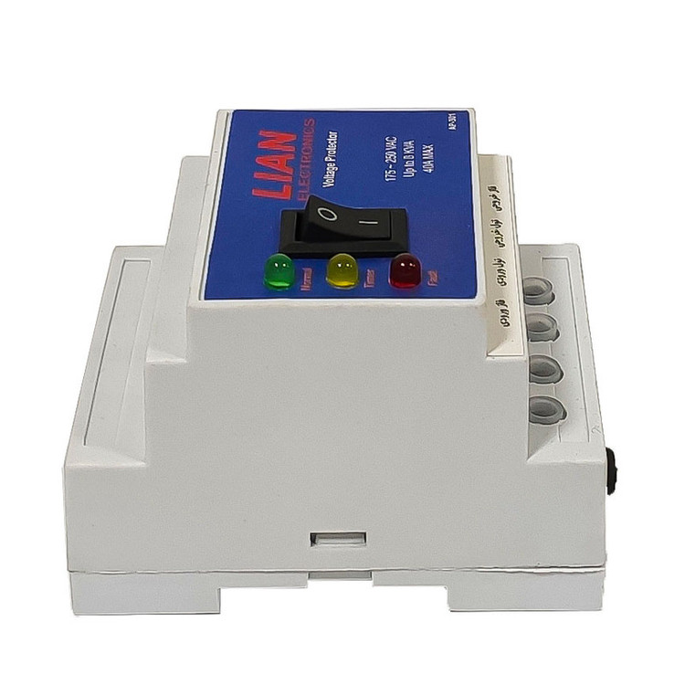 دستگاه محافظ ولتاژ لیان الکترونیک مدل AP-301 را می توان برای کنترل ولتاژ برق ورودی به ساختمان ، با قرار دادن آن در تابلو برق و یا جعبه فیوز ، به کار گرفت . دستگاه دارای ترمینال های ورودی و خروجی مقاوم در برابر جریان بالا می باشد . همچنین دستگاه از رله 40 آمپر بهره می برد که می توان جریان تا سقف 40 آمپر را کنترل کرد . عبارات ورودی و خروجی در زیر ترمینال ها درج شده است . این محافظ را می توان روی ریل تابلو برق نصب کرد و یا به کمک یک قطعه فلزی همراه دستگاه را بر روی دیوار و یا هر سطح دیگری ، نصب کرد . با افزایش و کاهش ولتاژ از حد مجاز ، ال ای دی قرمز دستگاه روشن شده و دستور قطع خروجیصادر می شود . در شروع کار دستگاه بعد از گذر زمان انتظار 4 دقیقه ای ، خروجی برق دار شده که با روشن شدن ال ای دی سبز رنگ ، کاربر از برق دار بودن خروجی و شرایط مناسب و یکنواخت برق ، باخبر می شود .ر