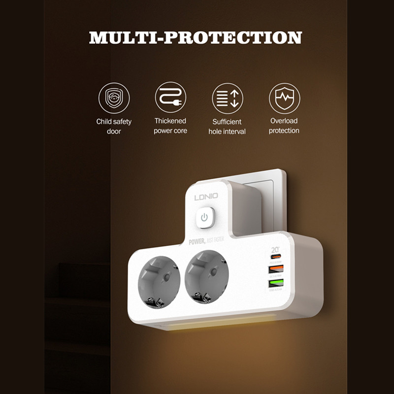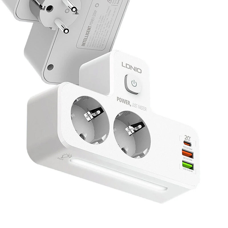 امروزه با زیاد شدن دستگاههای الکترونیکی و احتیاج به تامین انرژی، نیاز به چند راهی ها بیشتر احساس می شود. برند الدینیو از پیشتازان در عرصه تولید لوازم جانبی است و این محصولات از کیفیت بالایی برخوردار هستند. از تولیدات به روز این کمپانی می توان به چند راهی برق الدینیو مدل SE2337 اشاره کرد که محصول مناسبی برای میز کار شما محسوب می شود. این چند راهی علاوه بر 2 پریز برق، 3 خروجی USB نیز دارد که 2 خروجی USB-A و خروجی دیگر خروجی USB-C است. خروجی USB-C قابلیت PD3.0 و یکی از خروجی های USB-A قابلیت QC-3.0 را دارد تا بتوانید با سرعت بالا وسایل دیجیتال خود را شارژ کنید. توان کلی این محصول 2500 وات است. جنس بدنه چند راهی برق الدینیو مدل SE2337 از PC نسوز است و در برابر دمای بالا مقاوم است. یک کلید روی بدنه چندراهی برق الدینیو مدل SE2337 قرار گرفته است که امکان قطع و وصل کردن جریان برق را ایجاد میکند. با داشتن این محصول میتوانید به طور همزمان از 2 پریز برق و 3 خروجی USB استفاده کنید. در قسمت پایینی این محصول یک لامپ قرار داده شده که علاوه بر جذابیت، به عنوان چراغ خواب نیز کاربرد دارد. مشخصات فنی چند راهی برق الدینیو مدل SE2337 به شرح زیر است : Rated Power : 2500W Rated Voltage : 100-250V | 50-60Hz | 10A(Max) PD Output : 5V/3A | 9V/2.22A | 12V/1.67A | 20W(Max) QC3.0 Output : 5V/3A | 9V/2A | 12V/1.5A | 18W(Max) USB-A Output : 5V/2.4A | 12W(Max) Total Power : 20W Night Lamp Power : 15*0.2W/LED یکی دیگر از ویژگی های چند راهی برق الدینیو مدل SE2337 که آن را از بسیاری از محصولات مشابه در بازار متمایز میکند، قابلیت Turbo Power Engine است که بسته به دستگاهی که به این شارژر وصل میشود، بالاترین توان برای شارژ آن تامین می شود. در نظر داشته باشید با استفاده همزمان از پورت ها توان کلی بین آنها تقسیم خواهد شد.