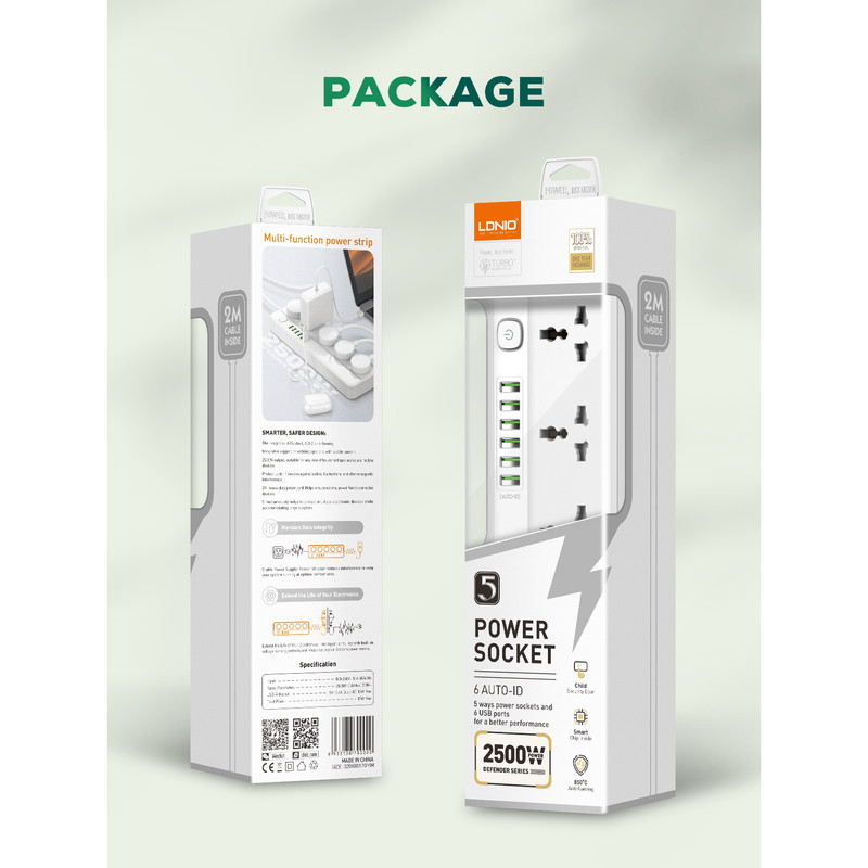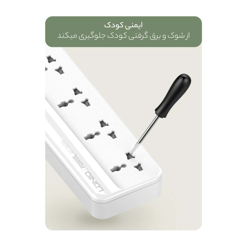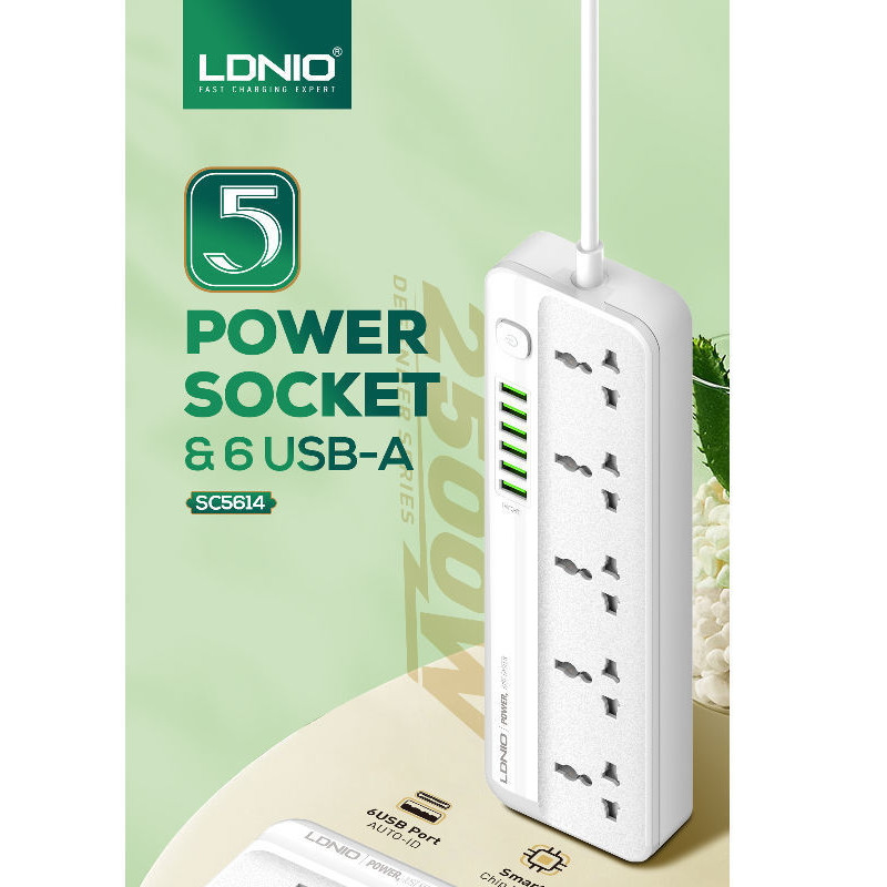 چند راهی برق و شارژر الدینیو مدل SC5614 یکی از وسایلی است که علاوهبر اینکه تعدادی کافی از پریز را در اختیار شما قرار میدهد، قابلیتهای دیگری را نیز در اختیار شما میگذارد، همچنین به دلیل رعایت استانداردهای امنیتی، استفاده از آن به شما اطمینان خاطر میدهد. در ابتدا باید اشاره کرد که مواد رسانای به کار رفته در چند راهی برق الدینیو بسیار با کیفیت بوده و از جنس مس هستند. به همین علت جریان برق به خوبی درون این چندراهی عبور میکند و اتلاف انرژی نیز به حداقل خود میرسد. این چند راهی شامل 5 پریز برق، 6 پورت USB است. توان کلی این چند راهی 2500 وات است. همچنین جنس بدنه تا دمای 850 درجه سلسیوس در برابر دما مقاومت دارد. همچنین یک کلید روی بدنه چندراهی قرار گرفته است که امکان قطع و وصل کردن جریان برق را ایجاد میکند. البته در کنار آن باید به این مورد نیز اشاره کرد که پریزها دارای محافظ کودک نیز هستند. ولتاژ ورودی این دستگاه برابر با 100V~250V است و حداکثر شدت جریان آن هم 10 آمپر است. تعداد پورتهای USB قرار داده شده روی این پریز برابر با 6 عدد است. هر 6 پورت دارای فناوری Auto ID هستند و ولتاژ و شدت جریان خروجی آنها برابر با 5V~2.4A است که حداکثر توان خروجی آنها نیز برابر با 17 وات میشود. فناوری Auto ID نیز به این شرح است که ولتاژ و شدت جریان خروجی با توجه به وضعیت دستگاه به آن وارد میشود تا از آسیب دیدن آن جلوگیری شود.