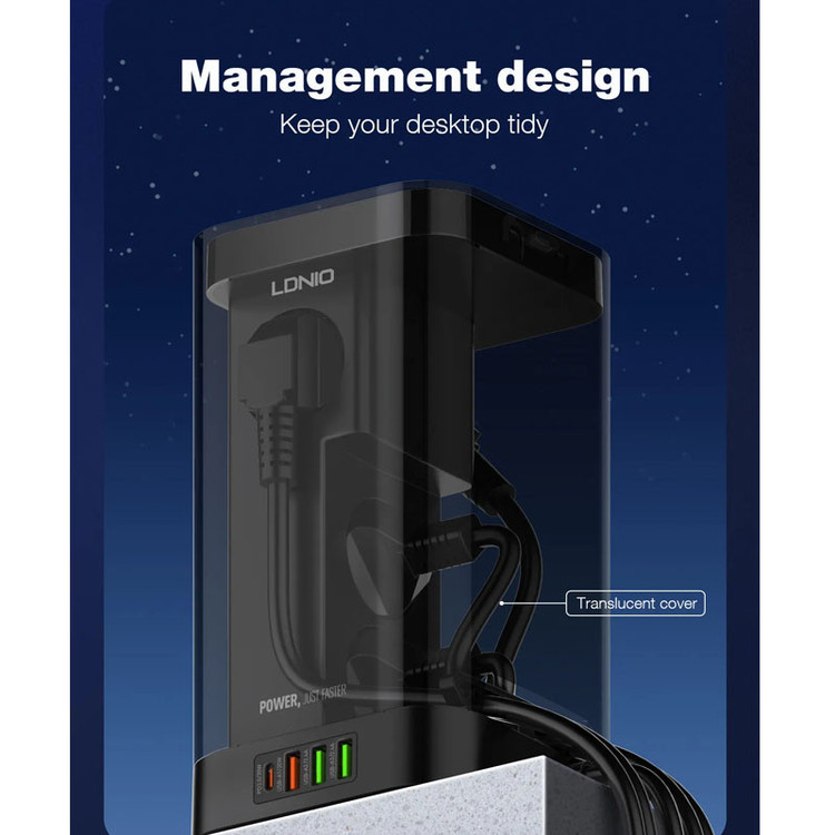 برند الدینیو یکی از پیشگامان صنعت لوازم جانبی الکترونیکی می باشد. این شرکت با هدف ایجاد انقلابی در نحوه استفاده مردم از دستگاههای الکترونیکی خود شروع به کار کرد و به سرعت به دلیل نوآوریها و کیفیت بالای محصولاتش، شهرت جهانی کسب کرد. امروزه به دلیل کمبود پریز برق نیاز به چندراهی بسیار احساس میشود. محصول چندراهی برق الدینیو مدل Multifunctional وارد بازار شده تا نیاز شما را در مواقعی که میخواهید از یک پریز برق چند خروجی برق بگیرید را رفع کند. طراحی شیشه ای که در این محصول کار شده آن را زیباتر کرده است. چندراهی برق الدینیو مدل Multifunctional دارای 4 پریز برق، 3 پورت USB و 1 پورت Type-c است. همچنین این چندراهی مجهز به کابل برق 2 متری بسیار با کیفیت است. این پریزها به طوری طراحی شده اند که با یکدیگر تداخلی نداشته باشند. شما با خرید این محصول میتوانید به طور همزمان 4 پریز برق و هم 4 پورت برای شارژ کردن داشته باشید. یکی دیگر از ویژگی های منحصر به فرد این محصول شارژر بی سیم است که بر روی محصول قرار گرفته و برای گوشی هایی که امکان شارژ Wireless دارند قابل استفاده است. توان خروجی کلی چندراهی 2500 وات بوده و حداکثر توان خروجی پورت های آن مجموعا 32 وات است که در صورت استفاده همزمان پورت ها این توان بین آنها تقسیم خواهد شد. این محصول میتواند با دارا بودن قابلیت فست شارژ، امکان شارژ تلفن همراه، دستگاه های دیجیتال و... با سرعت بالا را برای شما فراهم کند.
