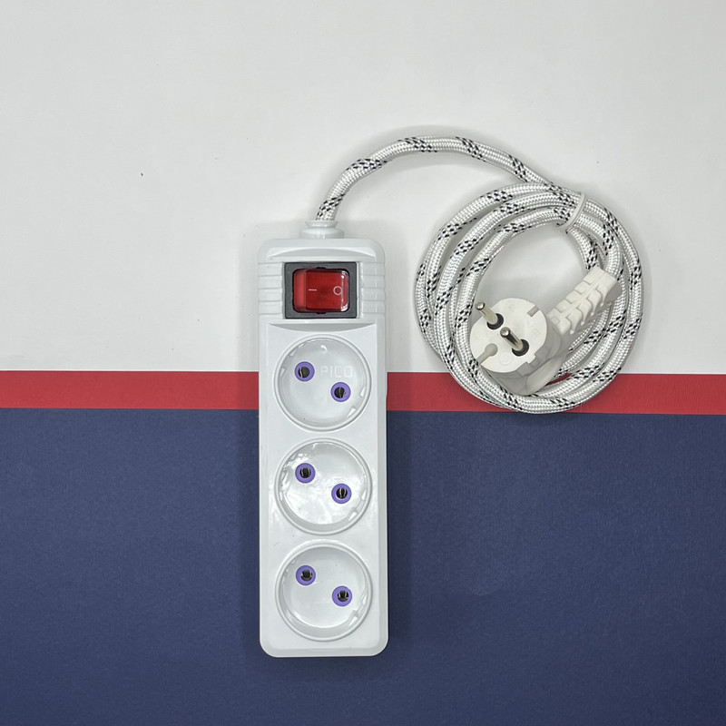 این سه راهی برق ، از کابل برق 2x1 جنس کنفی پارچهای طول 1/5 متر و سه راهی پیکو الکتریک تهیه شده است. از این چندراهی میتوان جهت مصارف خانگی , اداری و استفاده روزمره( لوازم صوتی و تصویری , اتو , سشوار , جاروبرقی , شارژر موبایل , کامپیوتر , مایکروویو , یخچال و فریزر و ..) استفاده نمود.چند راهی برق پیکو ساختاری ساده اما بسیار کاربردی دارد. شاید بتوان یکی از نقاط قوت و البته ویژگیهای مهم این سه راهی را کابل پارچهای آن نام برد.