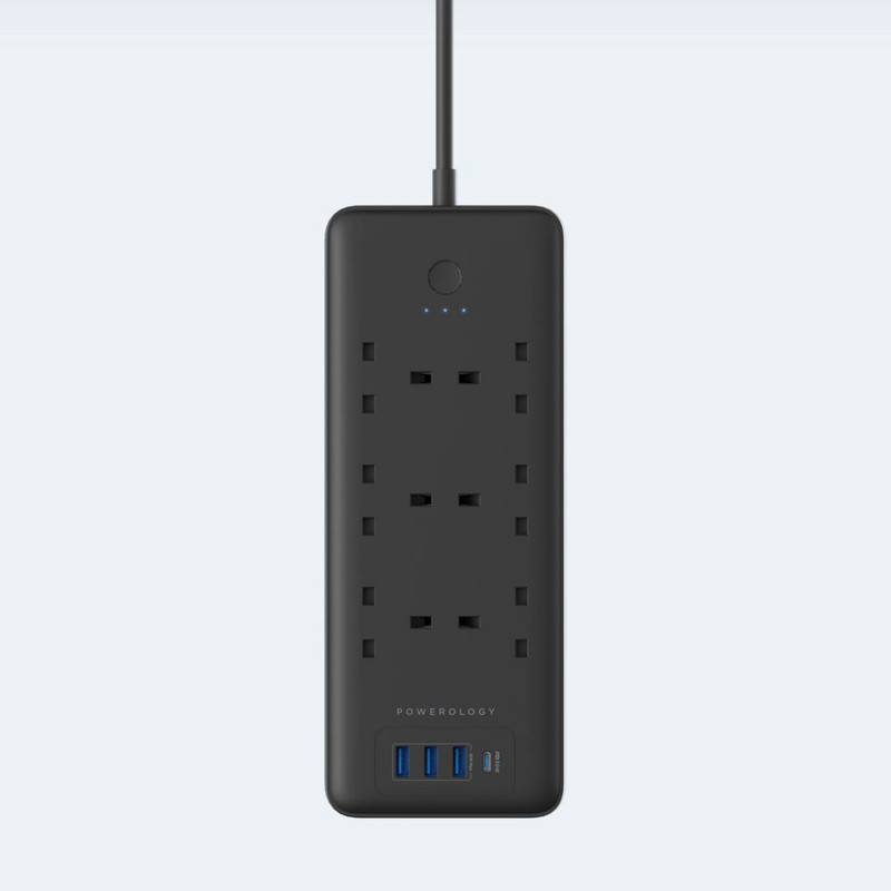 چند راهی برق پاورولوجی با داشتن 3 یو اس بی با حداکثر توان 18 وات و تایپ سی با توان حداکثر 30 وات همچنین 6 عدد پورت 3 شاخه برق میتواند نیاز شما را به یک چند راهی برق بطور کامل برطرف کند.