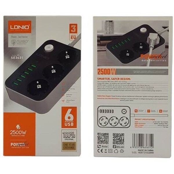 امروزه باتوجه به افزایش تعداد دستگاههای الکتریکی و الکترونیکی، نیاز به استفاده از انواع چندراهیها در هر مکانی وجود دارد. حال اگر این چندراهیها علاوهبر دارا بودن پریز برق از امکانات دیگری مانند خروجیهای USB هم برخوردار باشند کارایی آن بیشتر خواهد شد. چندراهی برق الدینیو LDNIO مدل SE3631 علاوه بر برخورداری از سه عدد پریز برق از شش خروجی USB هم برخوردار است. ولتاژ این خروجیها 5 ولت و شدت جریان آنها در بیشترین حالت 3.4 آمپر است. بدنهی این چندراهی از جنس پلاستیک با کیفیت بالا ساخته شده و طول کابل برق آن 1.6 متر است. پریزهای برق این چندراهی از پایههای ارت بهره میبرد و روزنههای آن به پوشش محافظ کودک مجهز است. همچنین برای قطع جریان برق در مواقع لزوم یک کلید روشن و خاموش روی این چندراهی تعبیه شده است.