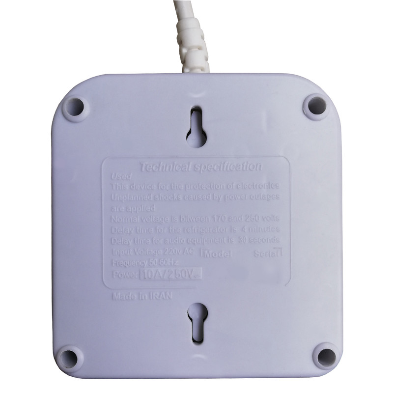 این محافظ یخچال و فریزر شما را در مقابل قطع و وصل و نوسانات شدید برق محافظت می نماید. طول کابل این محافظ 5 متر می باشد. همچنین پریزهای این محافظ از نوع ارت دار و مغزی آن از جنس برنجی می باشد. این محافظ دارای نشان استاندارد می باشد. طرز کار این محافظ به این شکل است که بعد از وصل کردن کردن محافظ به برق شهر، LED زرد به علامت زمان تاخیر (TIMER) روشن می شود. پس از پایان زمان تاخیر LED زرد خاموش و LED سبز (NORMAL) به علامت برق دار شدن پریز ها روشن می شود. در صورت افت ولتاژ یا افزایش ولتاژ از حد مجاز، پریز های بطور خودکار بدون برق شده و LED قرمز (DANGER) روشن می شود. پس از رسیدن ولتاژ به حد مجاز، LED قرمز خاموش و LED زرد روشن و پس از گذشت زمان تاخیر، LED سبز روشن و پریز ها برقدار خواهد شد.