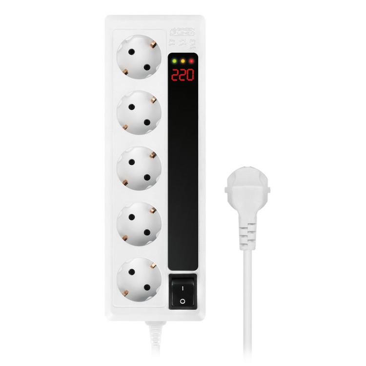 این وسیله لوازم صوتی، تصویری و کامپیوتر را در مقابل قطع و وصل و نوسانات شدید برق محافظت می نماید. بعد از وصل کردن محافظ به برق شهر، نشانگر (Display) زمان تاخیر را با شمارش معکوس شروع و همزمان چراغ زرد به علامت تاخیر (DELAY) روشن می شود. پس از پایان زمان تاخیر چراغ زرد خاموش و چراغ سبز (NORMAL) به علامت برق دار شدن پریز ها روشن می شود. در این حالت نشانگر (Display) ولتاژ برق شهر را نشان خواهد داد. در صورت افت ولتاژ یا افزایش ولتاژ از حد مجاز، پریز های بطور خودکار بدون برق شده و LED قرمز (Fault) روشن می شود. پس از رسیدن ولتاژ به حد مجاز، LED قرمز خاموش و LED زرد روشن و پس از گذشت زمان تاخیر، LED سبز روشن و پریز ها برقدار خواهد شد.