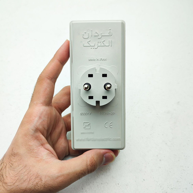 چند راهی ۴ خانه بدون ارت فردان الکتریک مدل دیواری مناسب برق تکفاز بوده و دارای هسته از جنس پلی آمید می باشد. جنس بدنه چند راهی چهار خانه دو شاخه دار فردان الکتریک از پلاستیک پلی کربن است، که مقاومت خوبی در برابر ضربه و حرارت دارد. ۴ راهی فردان الکتریک مدل ۳۰۲۰۳ فاقد کابل و سیم برای اتصال به پریز بوده و بر روی بدنه خود دارای یک دو شاخه می باشد. این ویژگی باعث شده مشکلاتی مانند گره خوردن سیم وسایل برقی در زمان استفاده و پارگی سیم ها در اثر فشار و تجمع آنها کاملا رفع شود. این محصول دارای وزن کمی بوده و به راحتی قابل جا به جایی می باشد و می توان از این چند راهی در هر مکانی استفاده نمود. حداکثر تحمل ولتاژ در این چند راهی بی سیم ۲۵۰ ولت و حداکثر جریان انتقالی آن ۱۰ آمپر می باشد. این دستگاه از عمر بالایی بر خوردار بوده و دارای نشان استاندارد ملی ایران و گواهینامه استاندارد اروپا (CE) است.