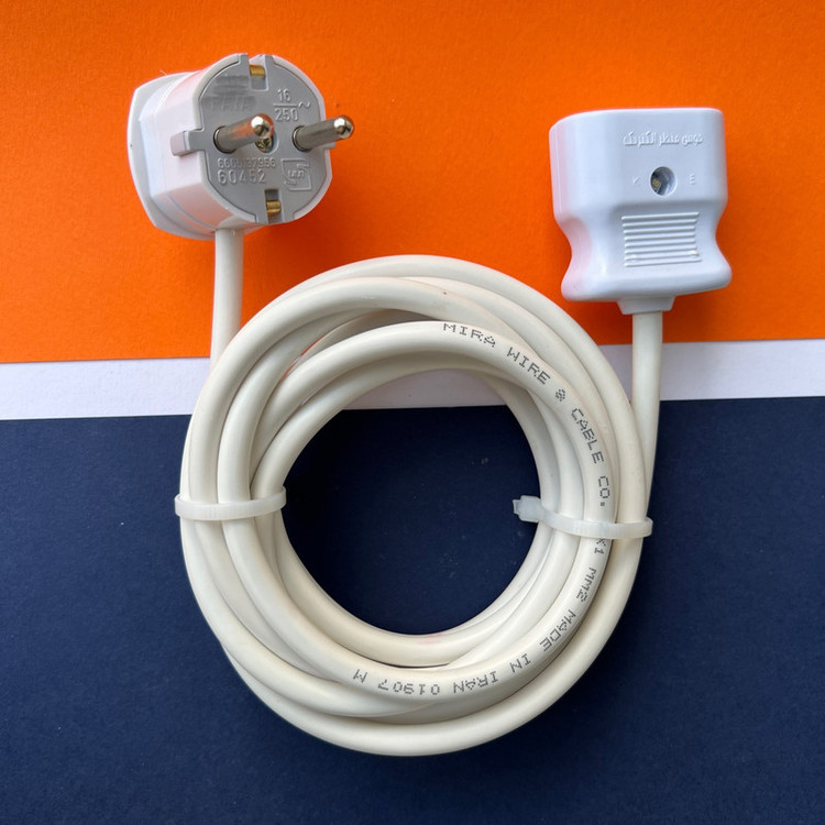 - کابل سیار میرا طول 3 متر - ساخت ایران - استاندارد - کیفیت بالا - ساخته شده با کابل 2x1 برند میرا - دوشاخه ارتدار برند باکیفیت پایا - مادگی قفل دار باکیفیت خوش منظر الکتریک - مناسب برای مصارف خانگی,ابزار های قدرتمند و پر مصرف
