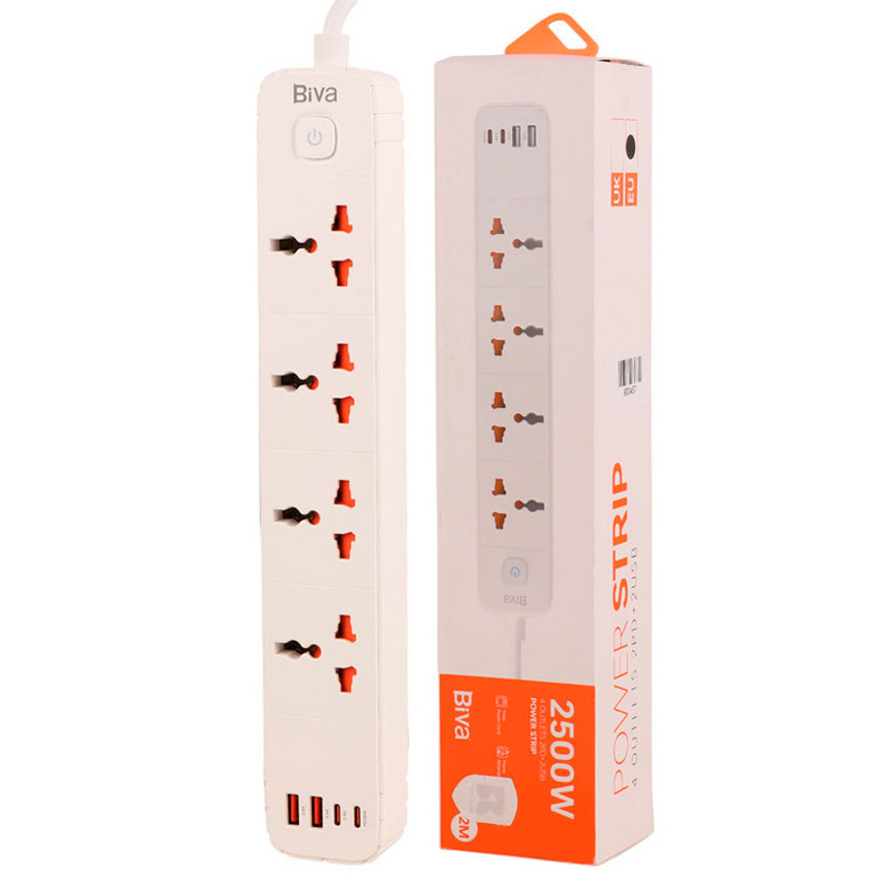کمپانی بیوا از بزرگ ترین تولیدکنندگان در حوزه لوازم جانبی موبایل و تبلت است. از محصولات پرکاربرد این کمپانی می توان به چندراهی ها اشاره کرد. با زیاد شدن دستگاه های الکترونیکی و احتیاج به تامین انرژی آن ها، نیاز به چند راهی ها بیشتر شده است؛ از این رو چند راهی برق بیوا مدل PS-05 گزینه مناسبی برای میز کار شما خواهد بود و از نامرتب شدن میز و اتاق شما جلوگیری خواهد کرد. این چند راهی چهار پورت برق، همینطور دو پورت USB-A و دو پورت Type-C در اختیار شما قرار داده و نیاز شما را به طور کامل برطرف می کند و دغدغه ای در رابطه با استفاده همزمان از چند کالای دیجیتال نخواهید داشت. لازم به ذکر است که سه شاخه اتصال به برق چند راهی برق بیوا مدل PS-05 از نوع EU و طول کابل آن 2 متر است و برای اتصال دو شاخه های ایرانی نیاز به تبدیل نخواهید داشت. حداکثر جریان ورودی این چندراهی 10 آمپر است که توان کلی آن را به 2500 وات می رساند. همچنین شدت جریان عبوری 2 پورت USB-A و یک پورت تایپ سی برابر با 2.4 آمپر و توان پورت دیگر Type-C که مجهز به فناوری PD است برابر با 20 وات می باشد. چندراهی برق بیوا مدل Power Strip بسیار با کیفیت بوده و پریزهای برق روی این چند راهی نیز از نوع Universal است که با انواع دو شاخهها سازگار می باشد. چند راهی برق بیوا مدل PS-05 از گواهی کیفیت CE و FCC و گواهی زیست محیطی ROHS برخوردار است. از دیگر جذابیت های این محصول این است که پریزهای برق آن با یکدیگر تداخل نداشته و شما می توانید به راحتی و بدون نگرانی از هر 4 پریز استفاده کنید.