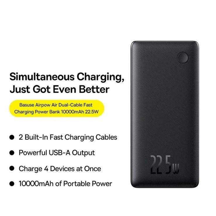 این پاوربانک با ظرفیت 10000 میلیآمپر ساعت، قابلیت شارژ سریع 20 وات برای آیفونهای 8 تا 15 را از طریق کابلهای داخلی USB-C و Lightning فراهم میکند. همچنین دارای خروجی قدرتمند 22.5 واتی از طریق درگاه USB-A است و میتواند همزمان 4 دستگاه را شارژ کند. این محصول با طراحی بسیار باریک و سبک، سازگاری گستردهای با انواع دستگاهها دارد و با استفاده از تراشه هوشمند ایمنی، برق پایدار و بدون وقفهای را به دستگاههای مختلف ارائه میدهد.