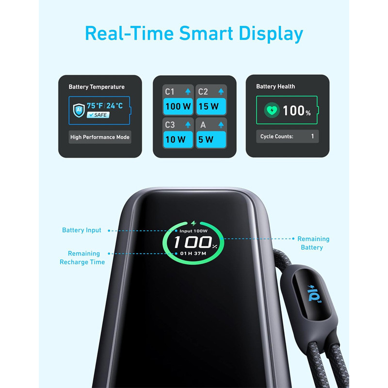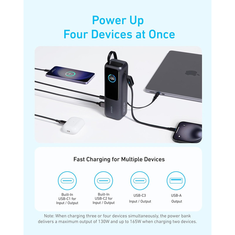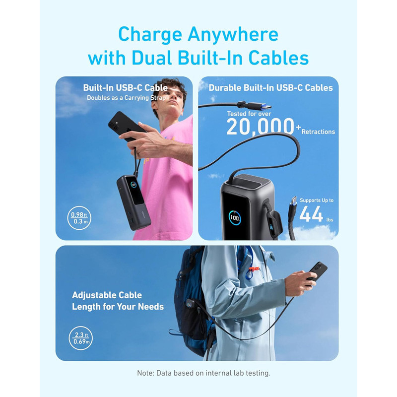 پاوربانک انکر مدل A1695 ظرفیت 25000 میلی آمپر ساعت به همراه دو کابل USB Type-C