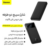 شارژر همراه باسئوس مدل Bipow PPBD05000 با ظرفیت 10000 میلی آمپر ساعت. وجود دو عدد درگاه خروجی USB با حداکثر شدت جریان 3 آمپر در 5 ولت. بهره مندی از یک عدد پورت Micro USB با شدت جریان ورودی 2 آمپر در 5 ولت. پشتیبانی از فناوری های شارژ سریع و توان خروجی کلی 15 وات، مجهز به نمایشگر دیجیتال. برخورداری از سنسور NTC برای محافظت در برابر دمای بیش از حد، قابل استفاده در هواپیما. دارای یک عدد پورت تایپ سی با حداکثر شدت جریان ورودی و خروجی 3 آمپر در 5 ولت . تامین انرژی توسط باتری لیتیوم پلیمری با ظرفیت 10000 میلی آمپر ساعت، وجود یک عدد کابل تایپ سی همراه. جنس بدنه ساخته شده از جنس پلاستیک مقاوم در برابر آسیب های احتمالی، دارای کلید فیزیکی جهت روشن و خاموش.